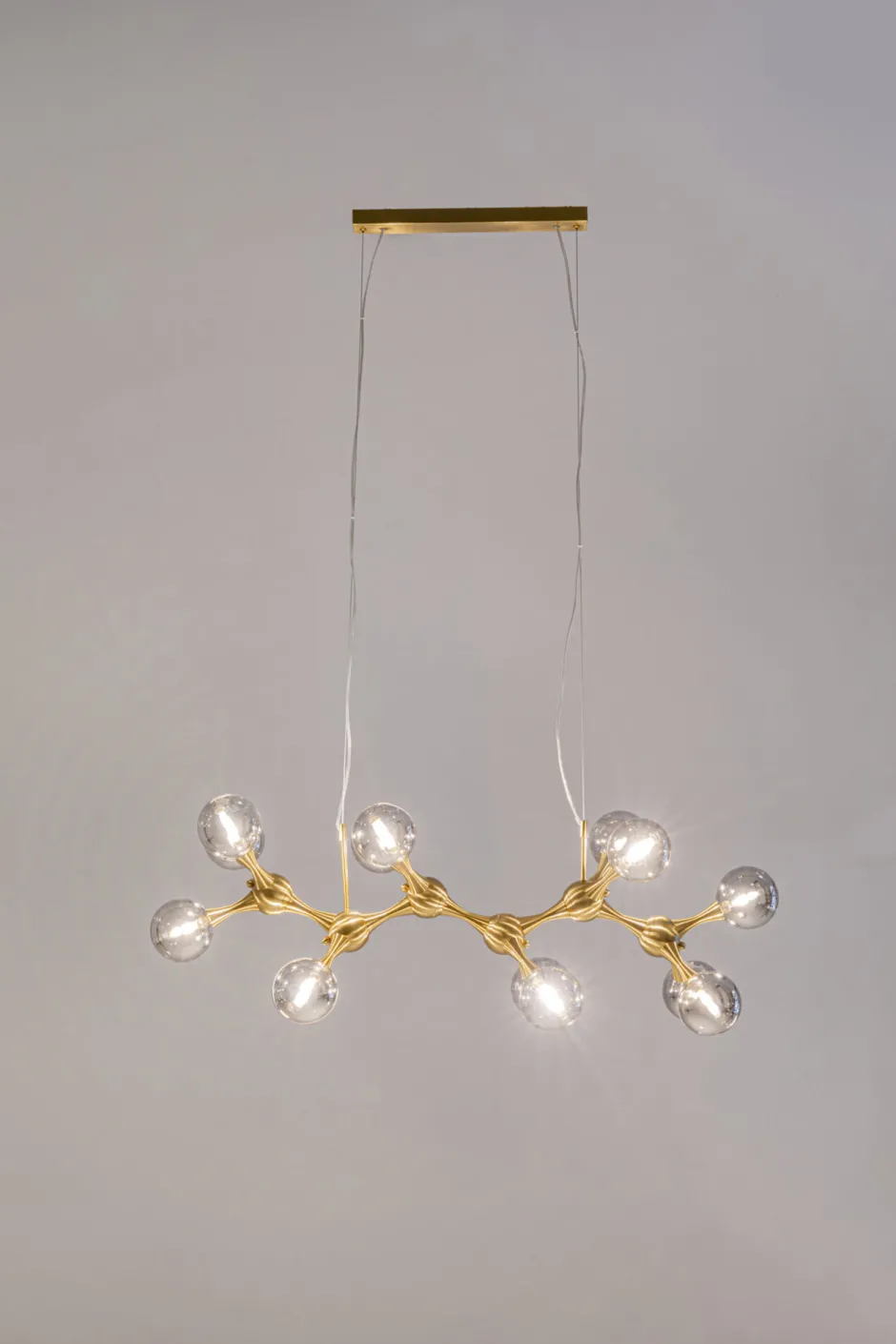 - Große Hängeleuchte in Gold mit Glasschirmen, 190 x 118 x 35 Zentimeter (H/B/T)