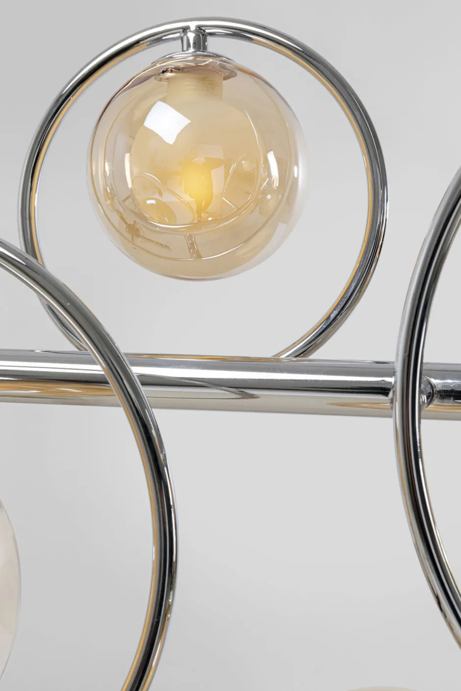 - Als Lampenschirme dienen neun Kugeln aus leicht getöntem Glas