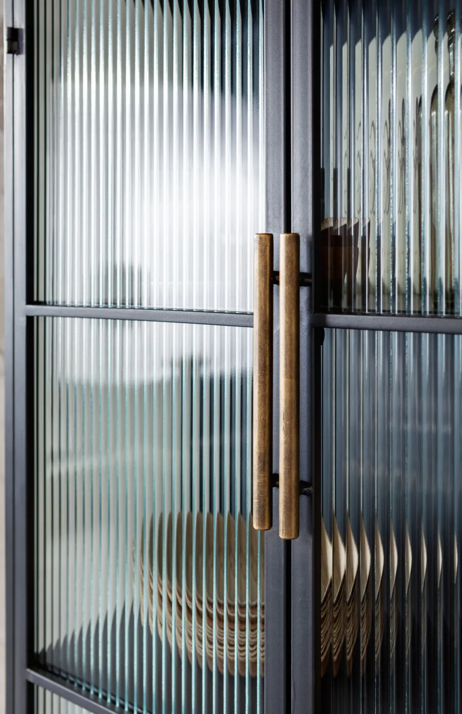 - Cooler und absolut zeitloser Material-Mix aus Stahl und geriffeltem Glas