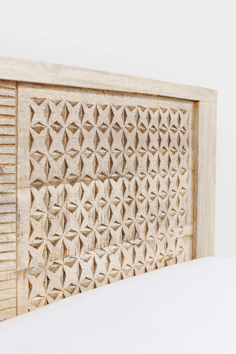 - Bett aus Mango-Massivholz mit dekorativen Schnitzereien, handgefertigt
