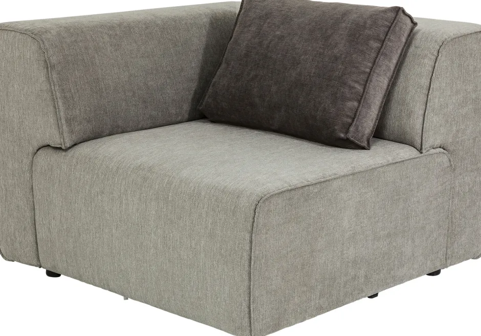- Eckelement aus dem Modul-Sofa-System Infinity mit einem weichen Stoffbezug in Grau für die linke Seite. Ein Kissen in dunklem Grau wie abgebildet im Lieferumfang enthalten