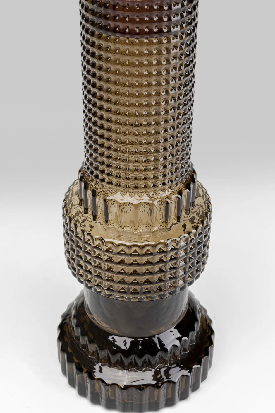 - Ein Glasobjekt wie aus der Werkstatt eines Künstlers, das mit geometrischen Formen und Strukturen spielt