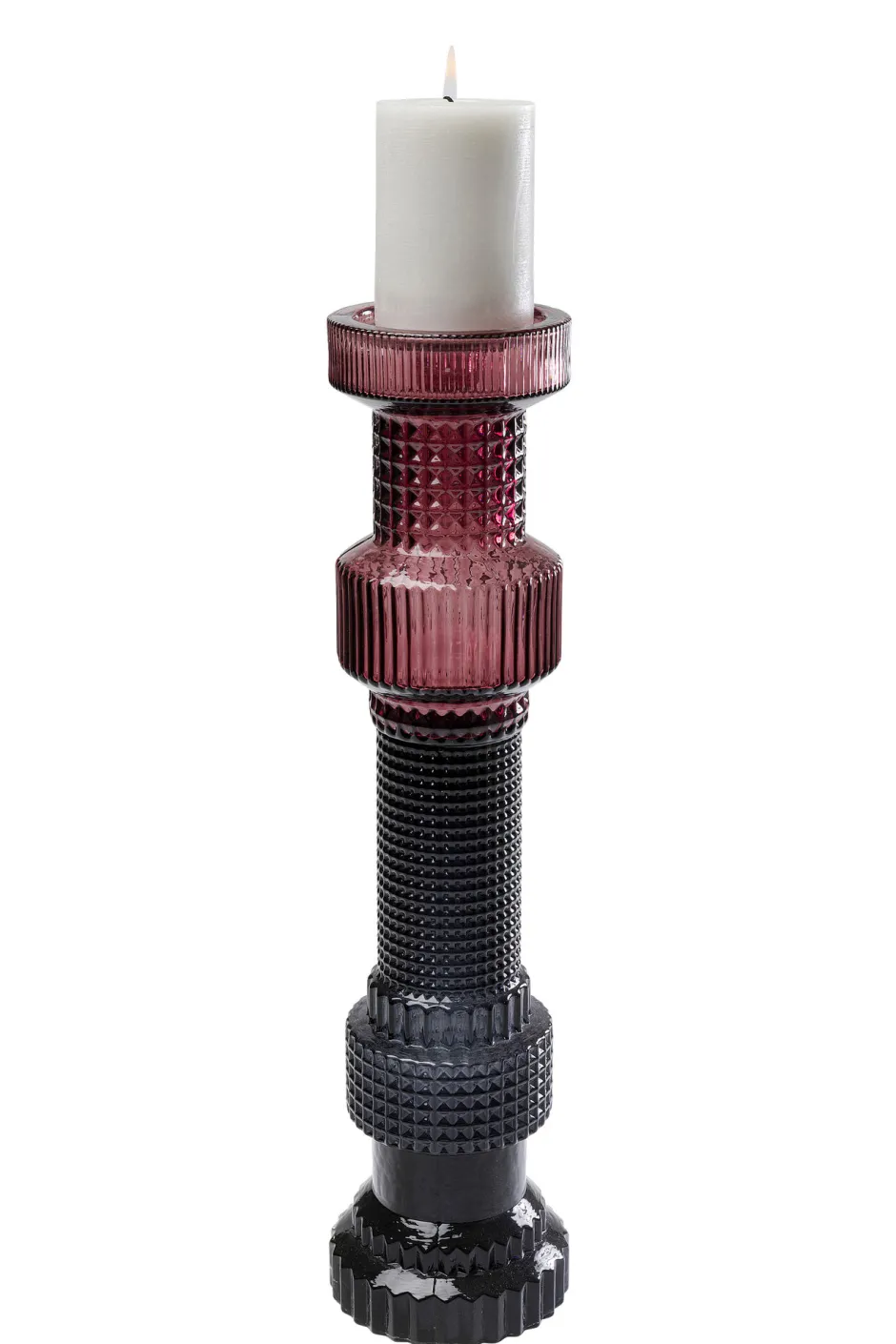 - Hoher Kerzenständer aus farbigem Glas in den Maßen 49 x 12 x 12 Zentimeter (H/B/T)