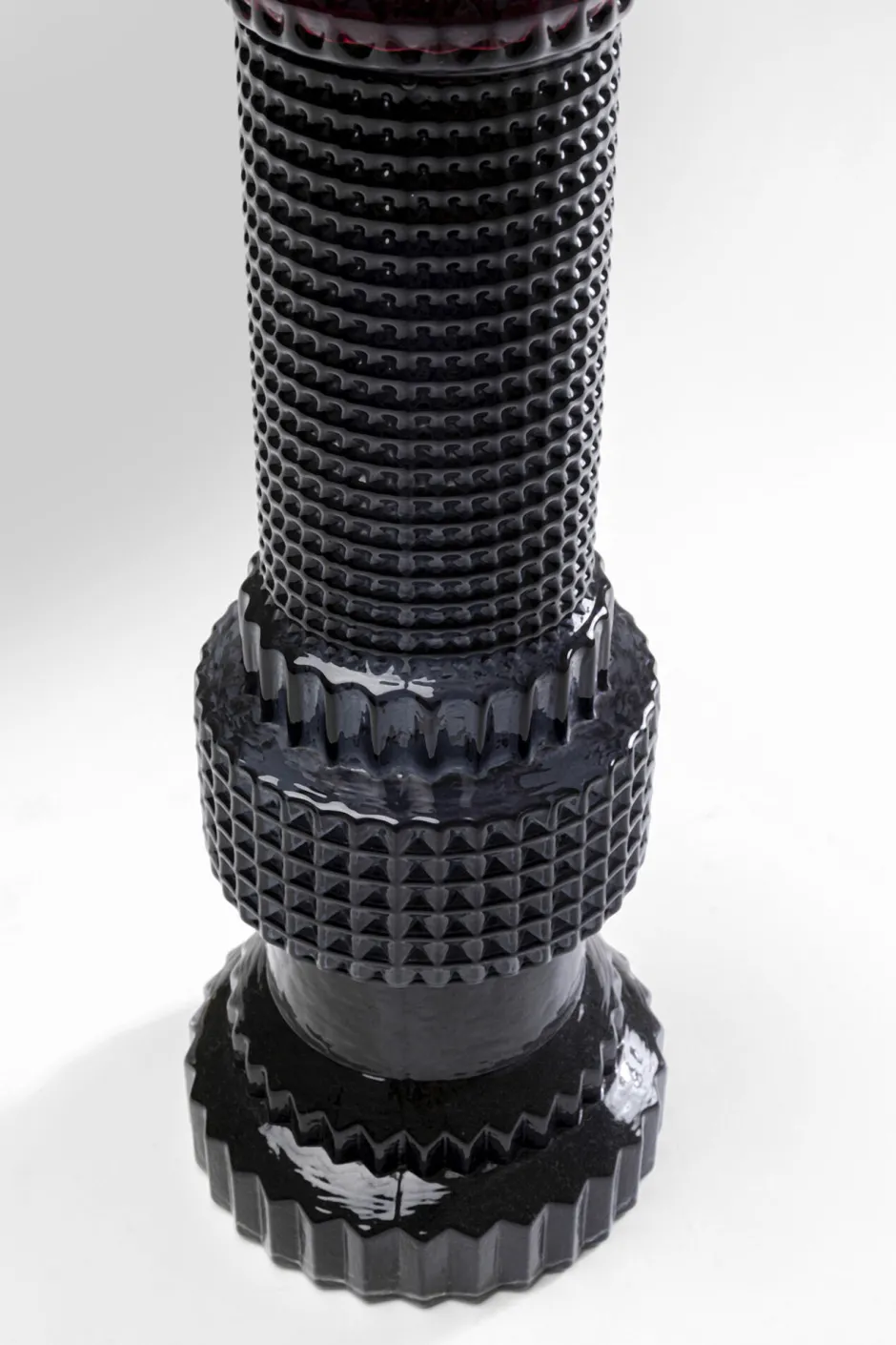 - Ein Glasobjekt wie aus der Werkstatt eines Künstlers, das mit geometrischen Formen und Strukturen spielt
