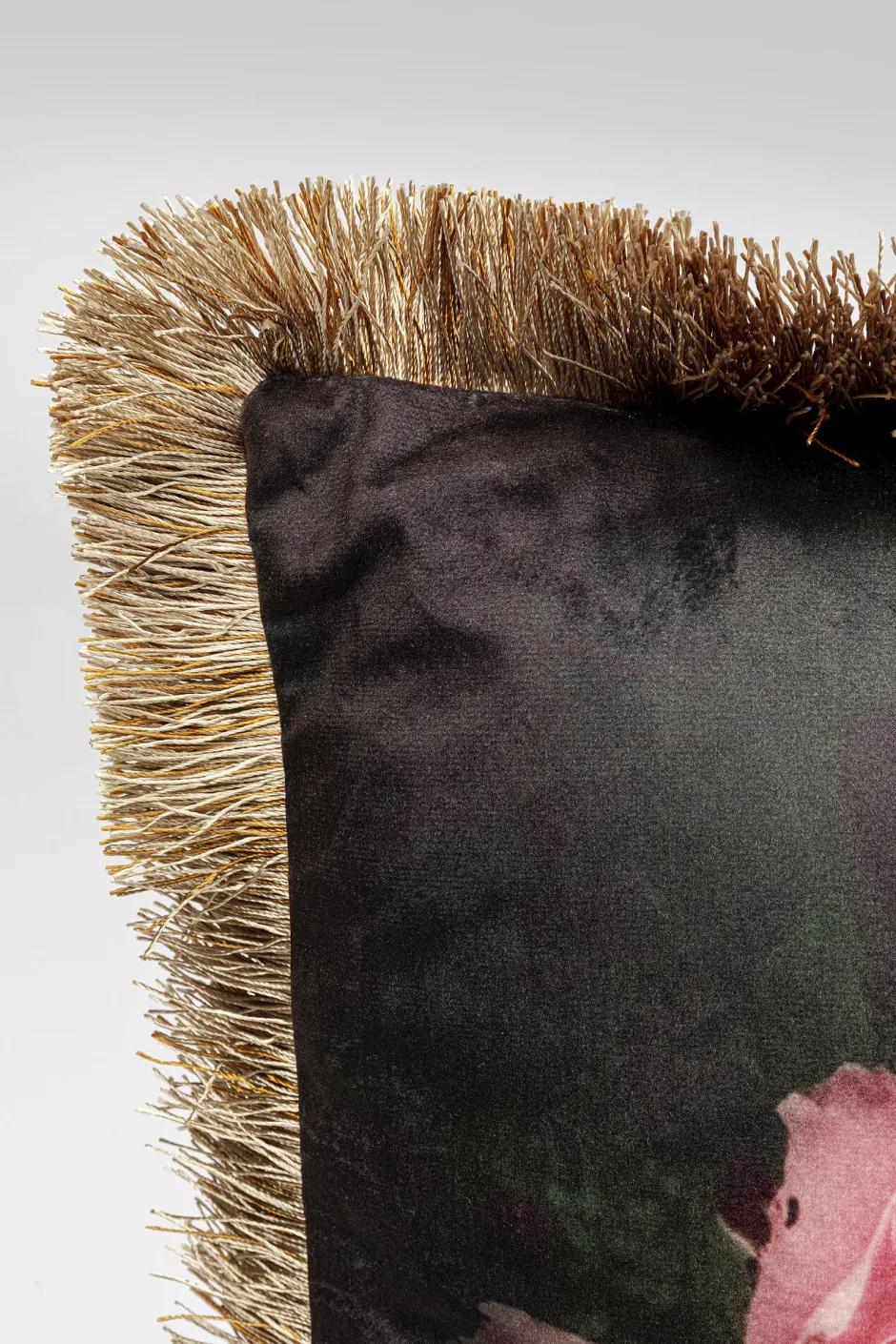 - Quadratisches Sofakissen mit Fransenkanten. Das Motiv ist eine Liebeserklärung an die Pfingstrosen