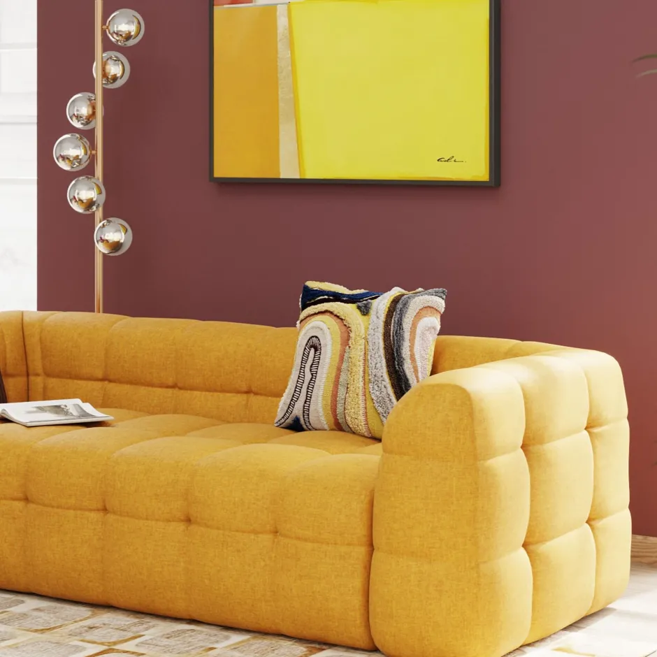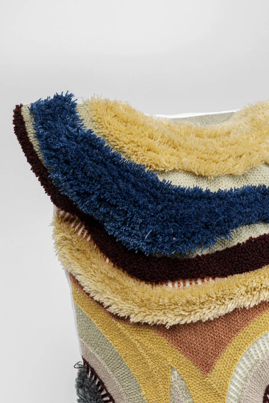 - Poppiger, lebendiger Mix aus flauschigen Oberflächen in unterschiedlichen Webarten in Grau und Gelb