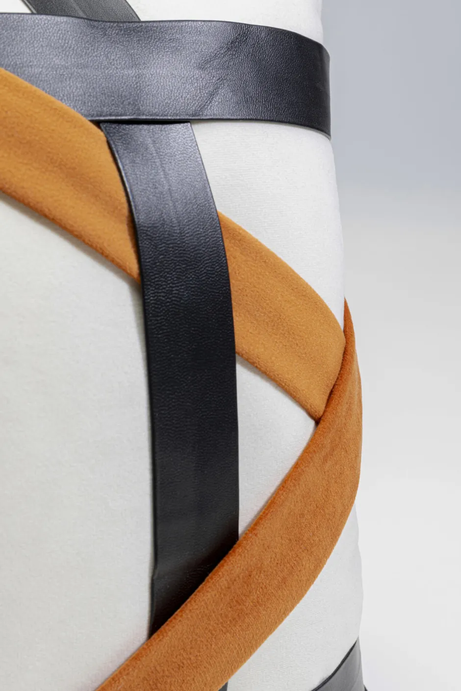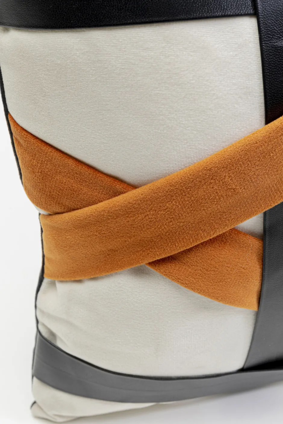- Das Kissen überzeugt mit symmetrischen Bespannungen in glänzender und Velours-Lederoptik in natürlichen Tönen