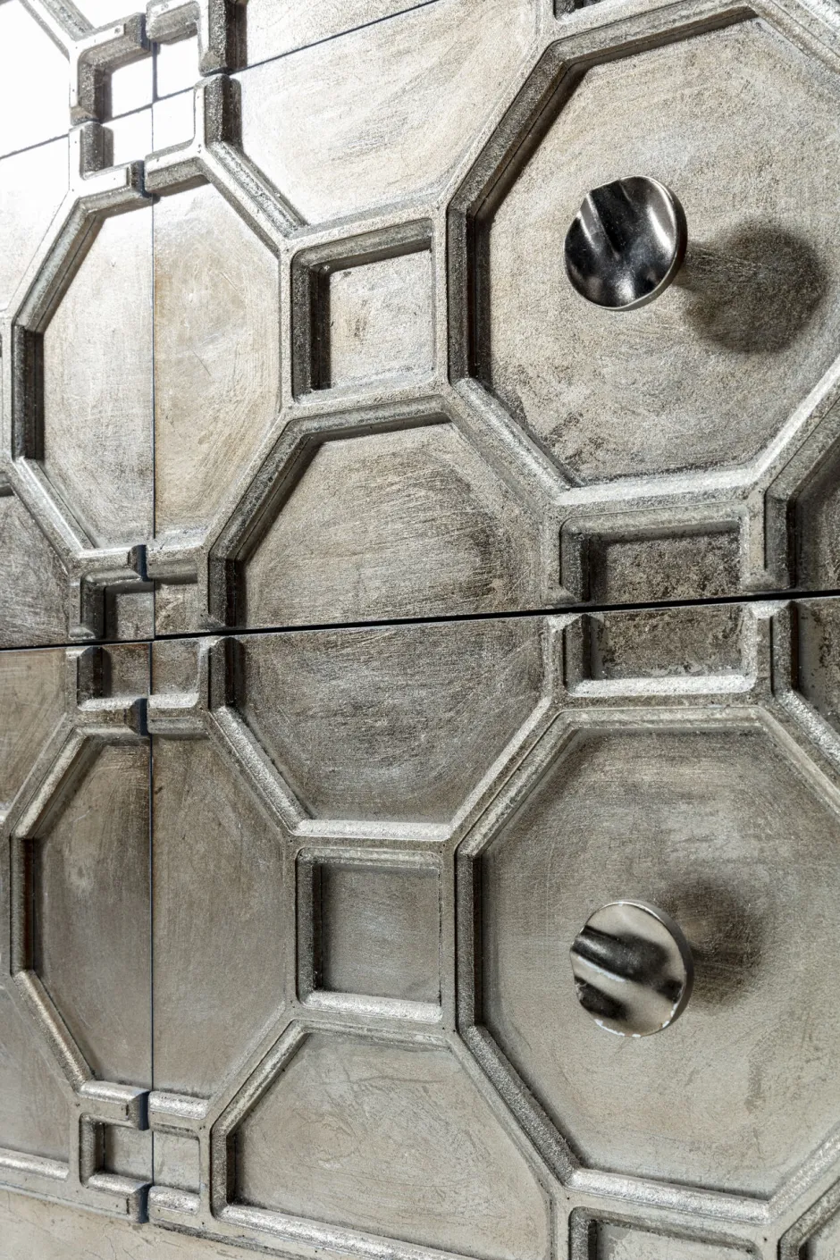 - Bildschöne Kommode mit verzierter Front, sechs Schubladen, lackiert in einem sanften, warmen Metallic-Ton