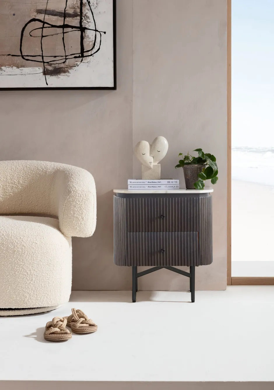 - Die Abdeckplatte aus echtem Marmor verleiht der Holzkommode eine ansprechende ästhetische Note
