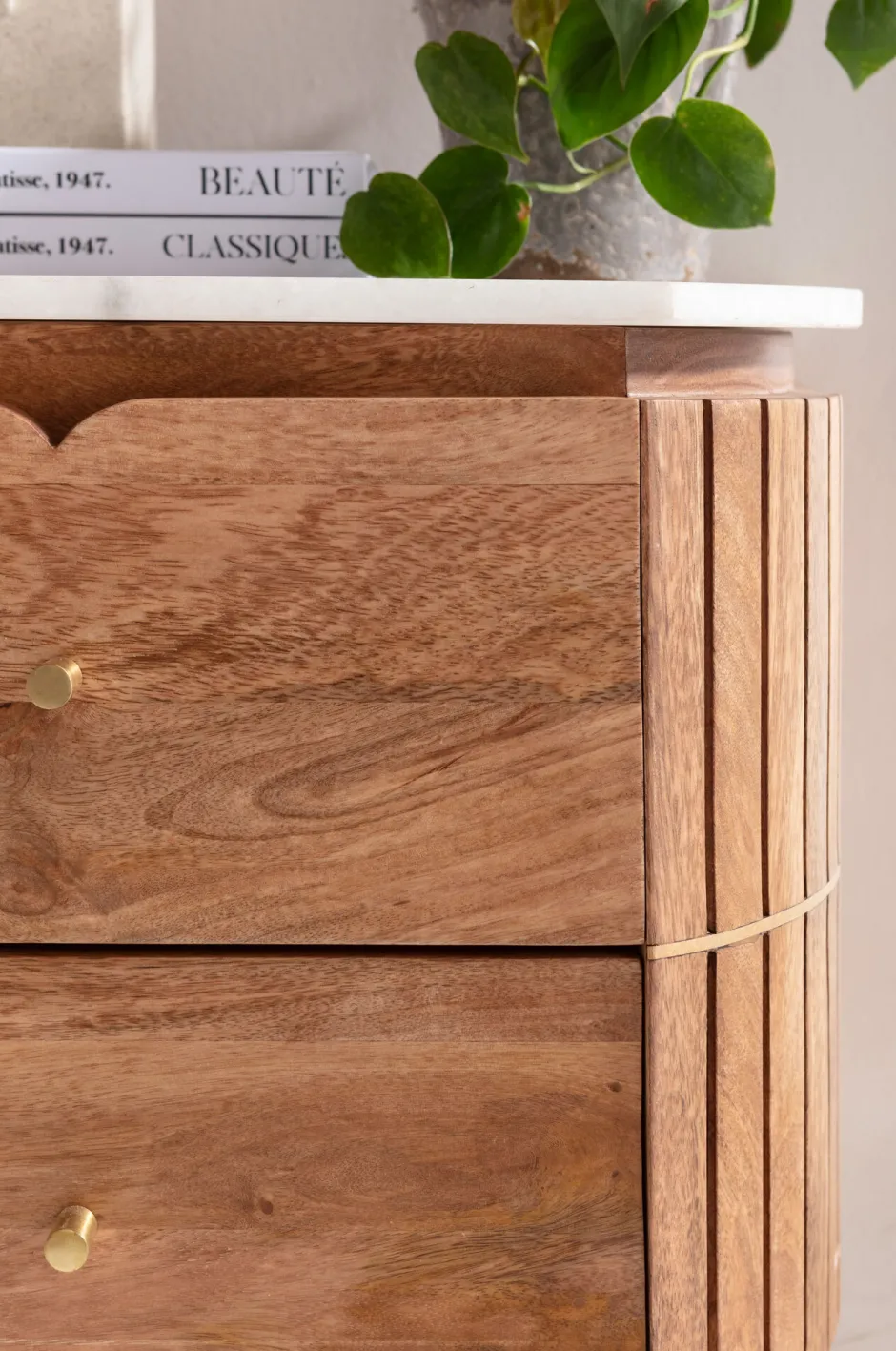 - Braune Kommode aus Massiv-Holz mit einer Deckplatte aus echtem Marmor