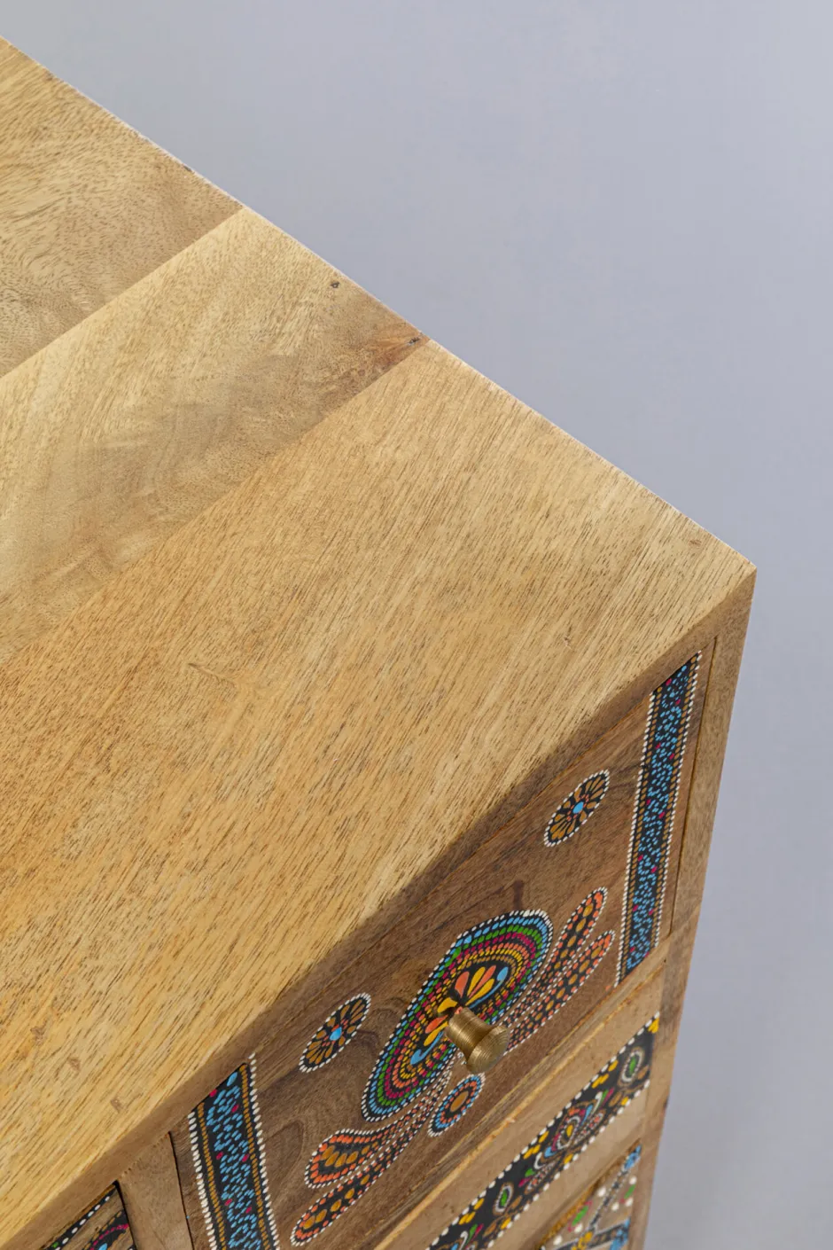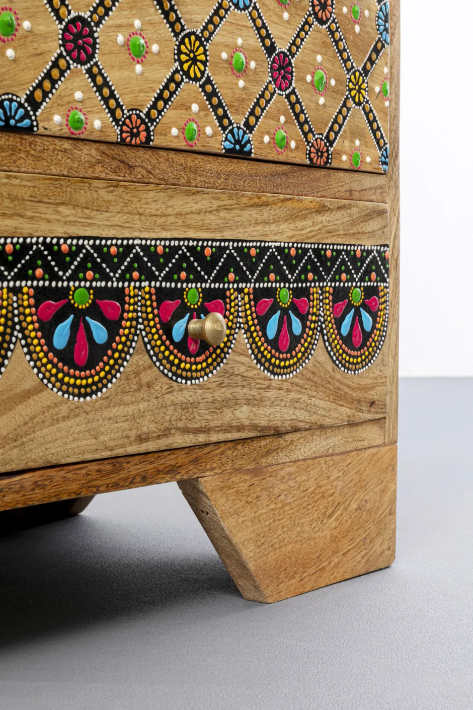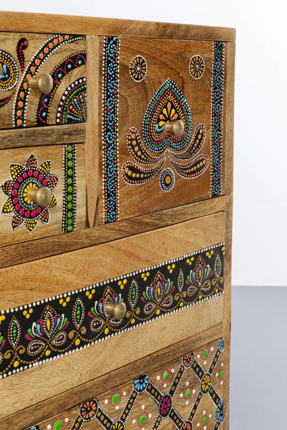 - Die bunten Muster auf den Fronten der Schübe sind liebevoll von Hand gemalt