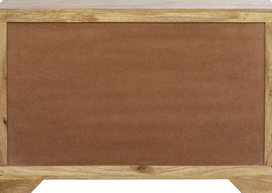 - Braune Kommode aus Mango-Massivholz mit verzierten Fronten, 79.5 x 115 x 36 Zentimeter (H/B/T)