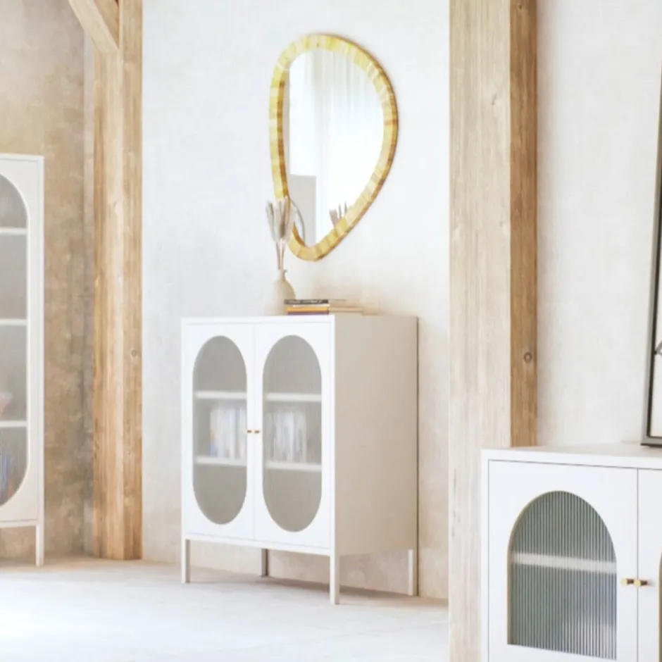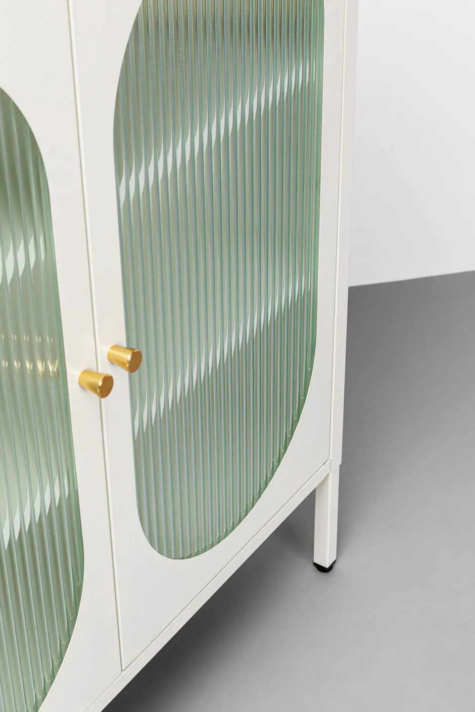 - Harmonische Elemente aus geriffeltem Glas und goldene Griffe verleihen dem Design einen stilvollen Charakter