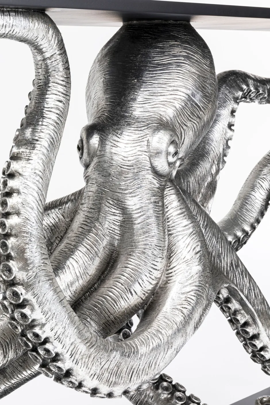 - Stabiler Rahmen in Schwarz aus Holz, Octopus aus Kunststein in Silber