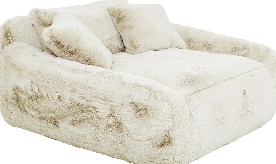 - Großer Sessel in Creme-Weiß komplett mit Kunstfell bezogen, 73 x 156 x 157 Zentimeter (H/B/T)
