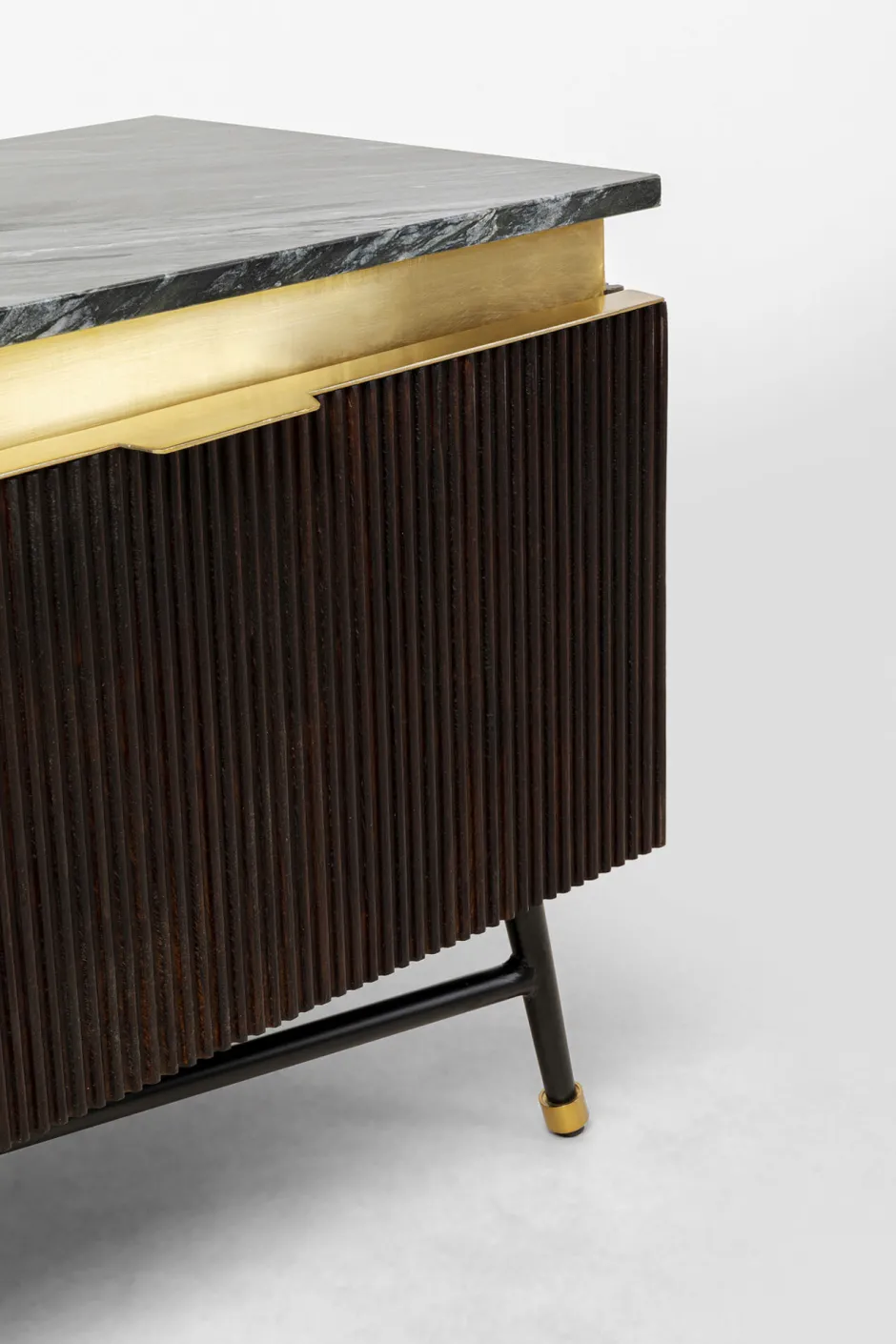 - Braunes Lowboard mit Gold-Highlight, das Massivholz und Marmor extravagant verbindet