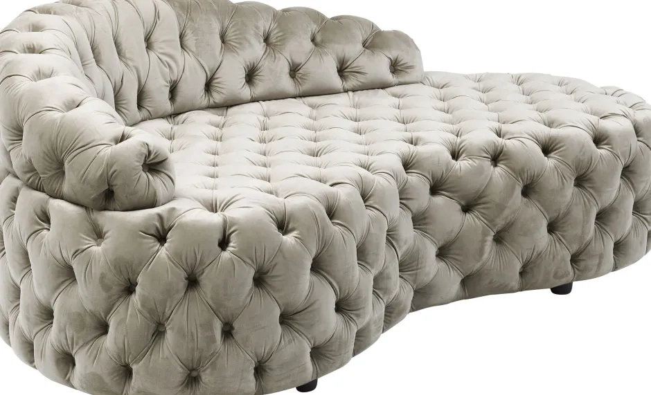 - Samtig weich, mit aufwendiger Knopfheftung und in einem sanften Champagnerton: Das Sofa hat das Potenzial zum Star