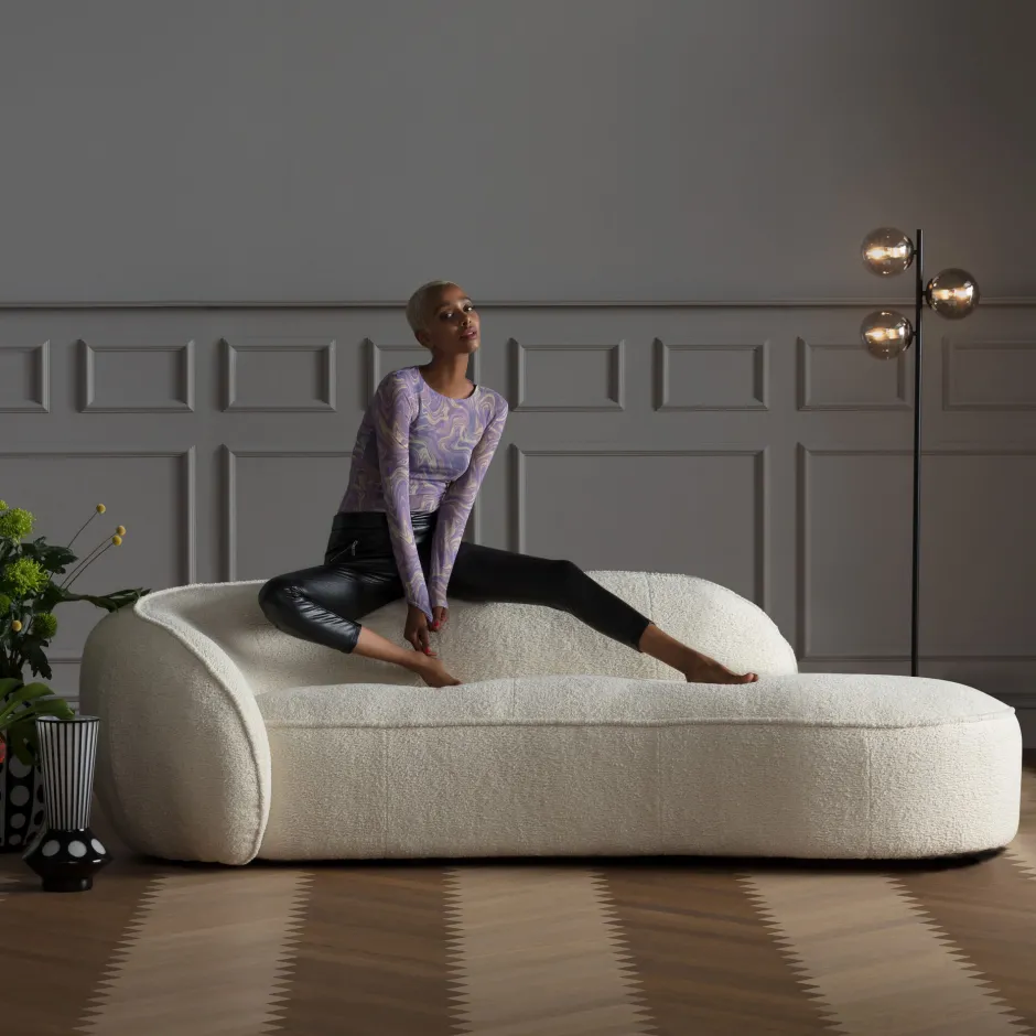 - Trend-Farbe Creme: Der neutrale Ton der Chaiselongue macht jedes Umstyling mit Kissen und Decken mit