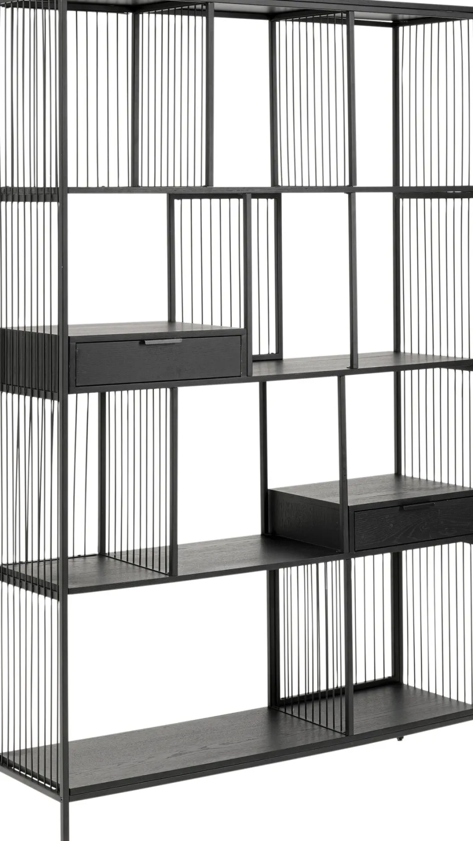 - Modernes, schwarzes Bücherregal mit extra Schubladen, 200 x 125 x 35 Zentimeter (H/B/T)