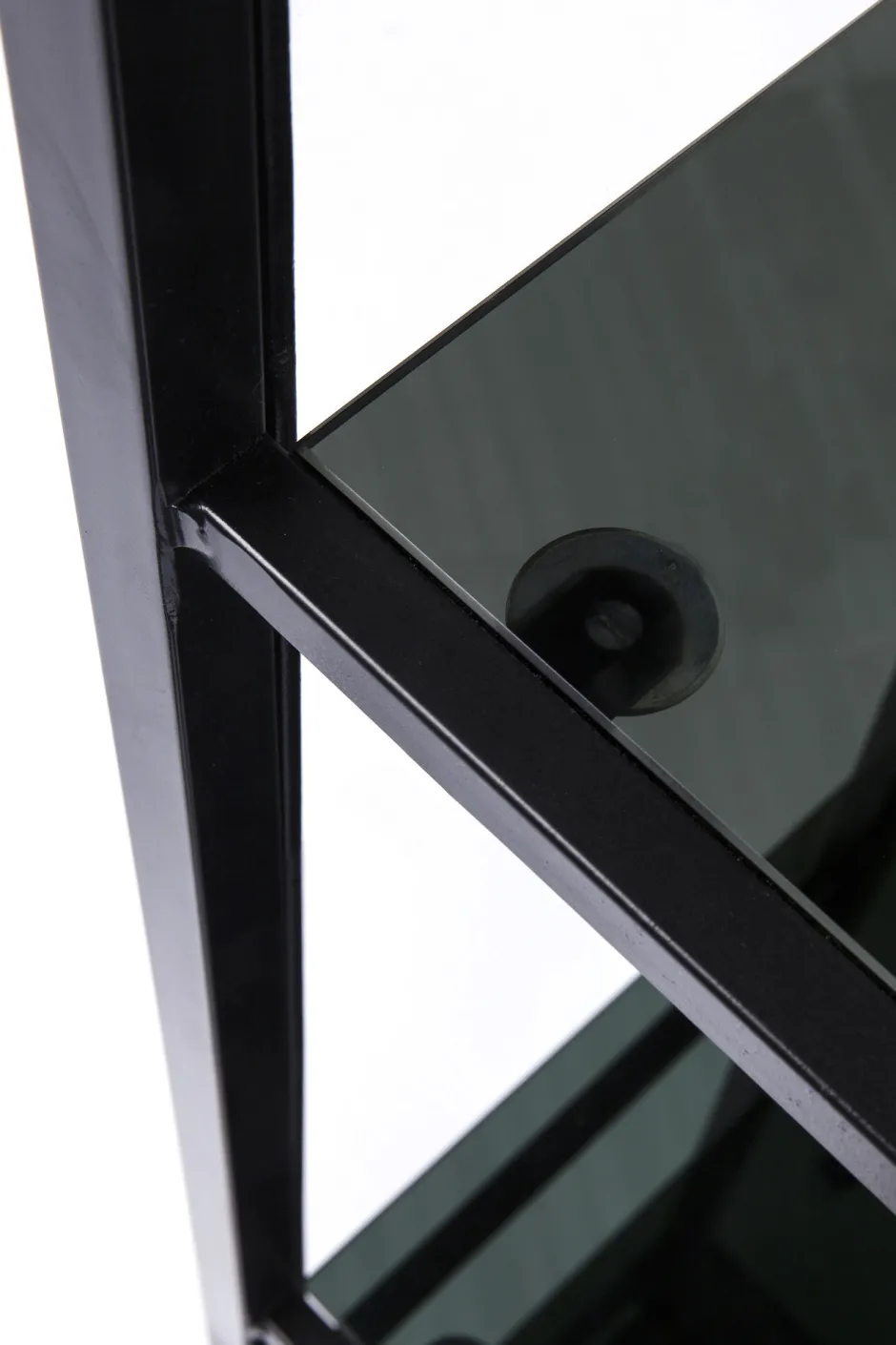 - Schwarzes Stahl-Regal im Designerlook mit anthrazitfarbenen Glasböden