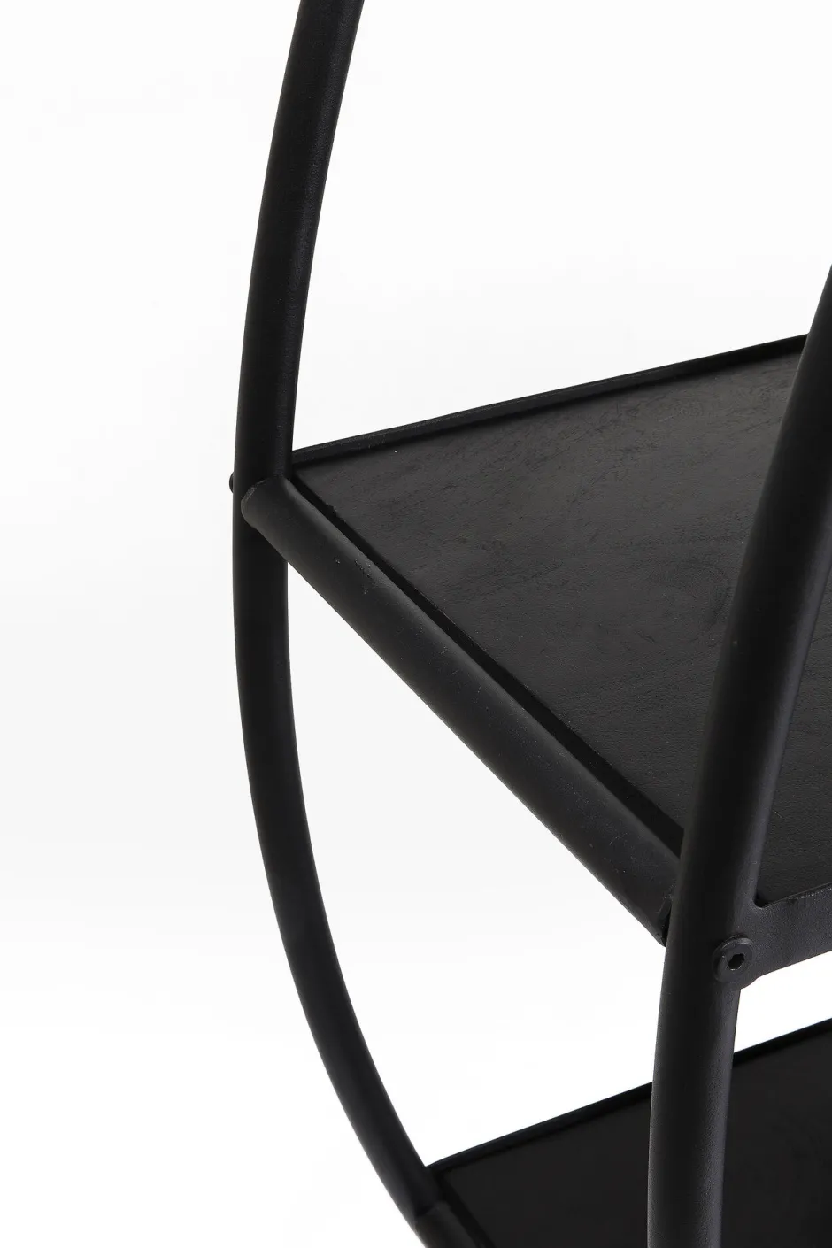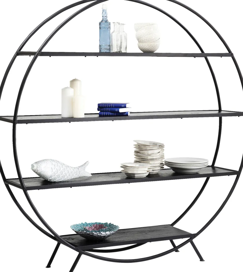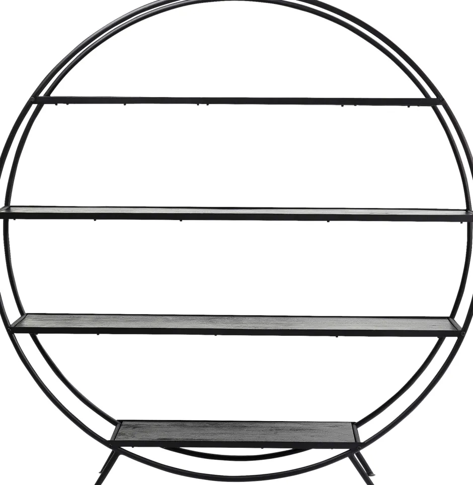 - Großes, rundes Regal aus schwarz lackiertem Stahl mit Regalböden aus Massivholz