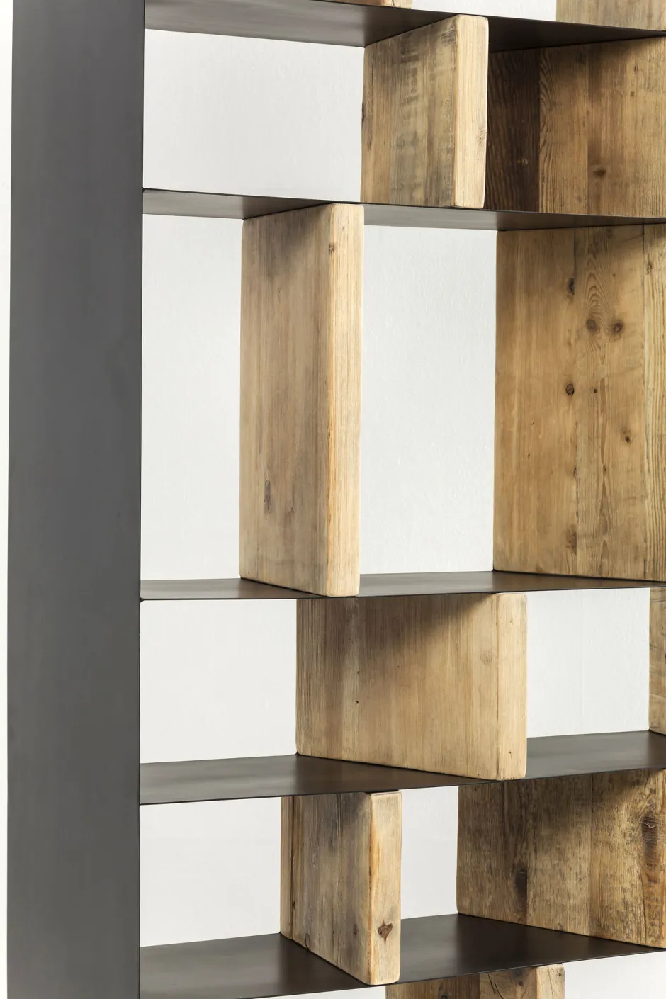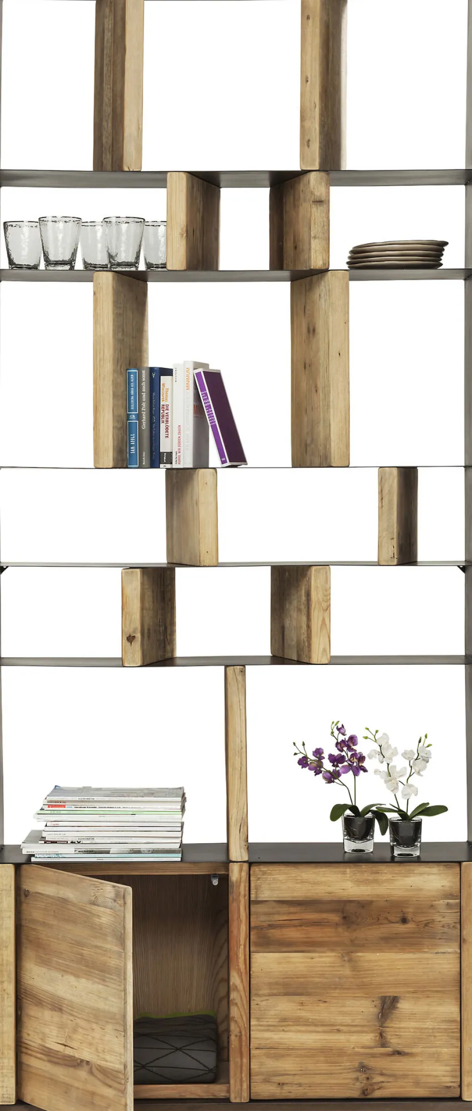 - Die moderne Linienführung und der Mix aus Stahl und Holz machen das Dekoregal einzigartig