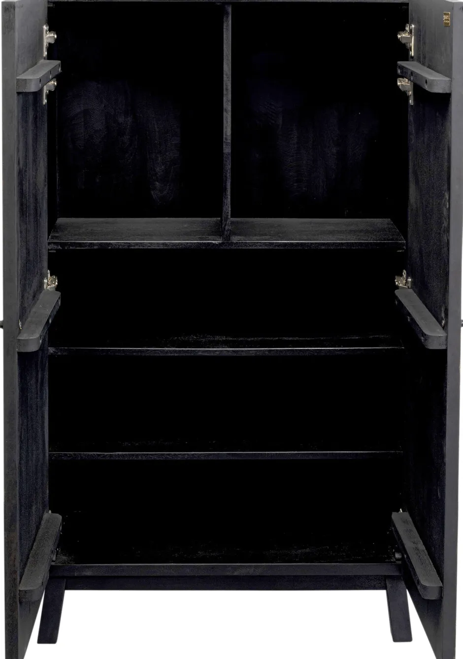 - Die fünf fest montierten Ablageflächen hinter den beiden Türen bieten jede Menge Stauraum für Bücher, gefaltete Kleidung, Geschirr & Co.