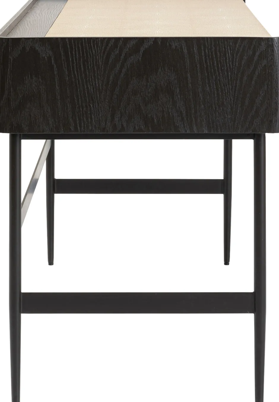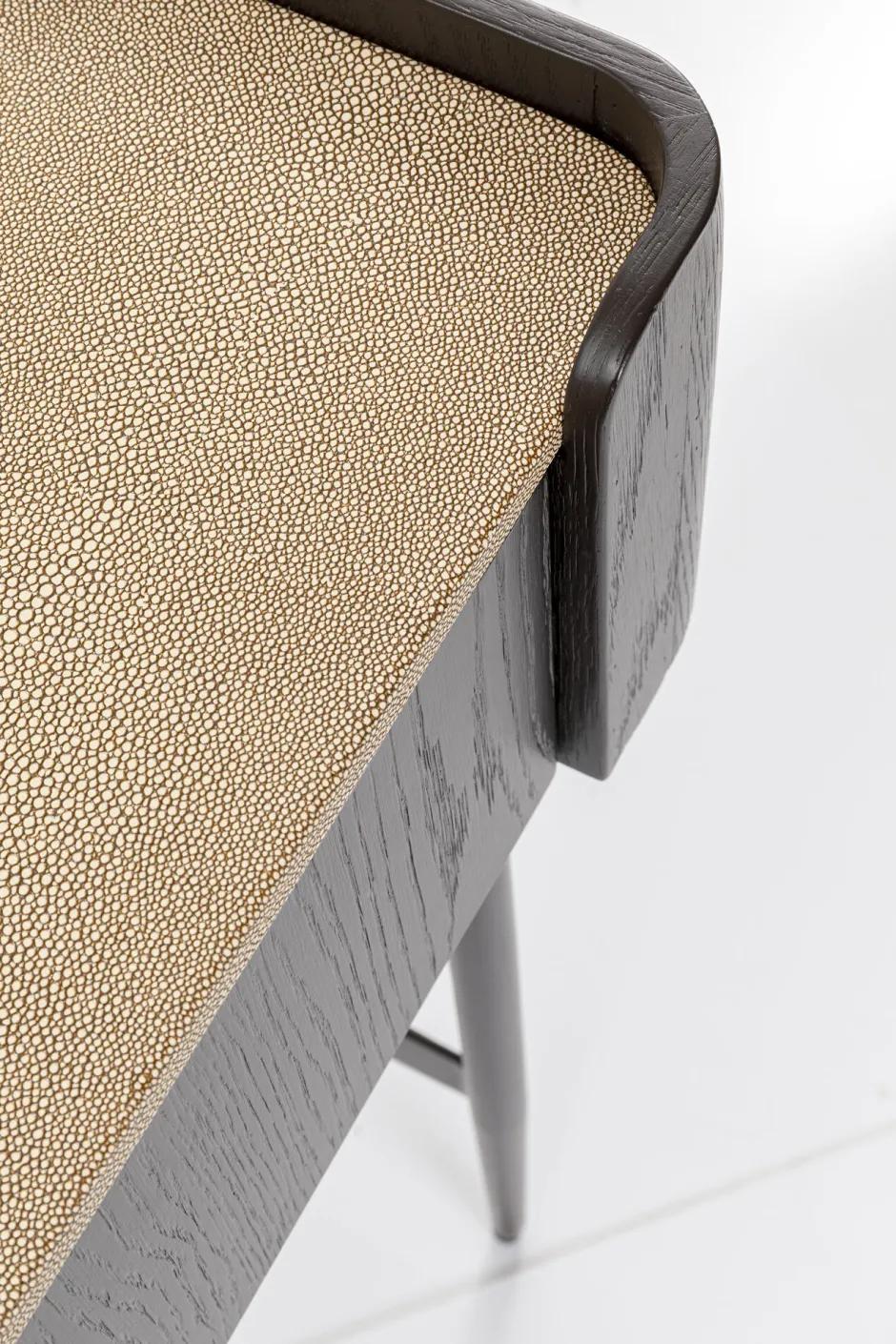 - Charaktervoll: die Kombination von dunklem, schwarz-braunem Eichenholz-Furnier mit den cremefarbenen Bezügen in feiner Rochenhaut-Optik