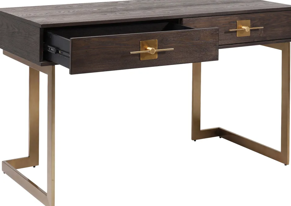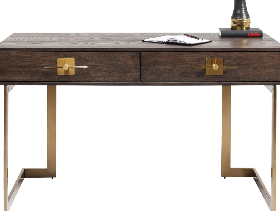 - Schreibtisch, der mit dem grafischen Gestell im Messing-Look sehr edel wirkt