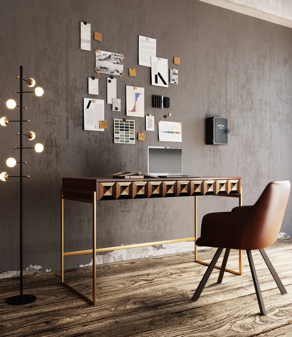 - Exklusiver Holz-Schreibtisch mit einer Front in 3D-Optik, 76 x 120 x 59 Zentimeter (H/B/T)