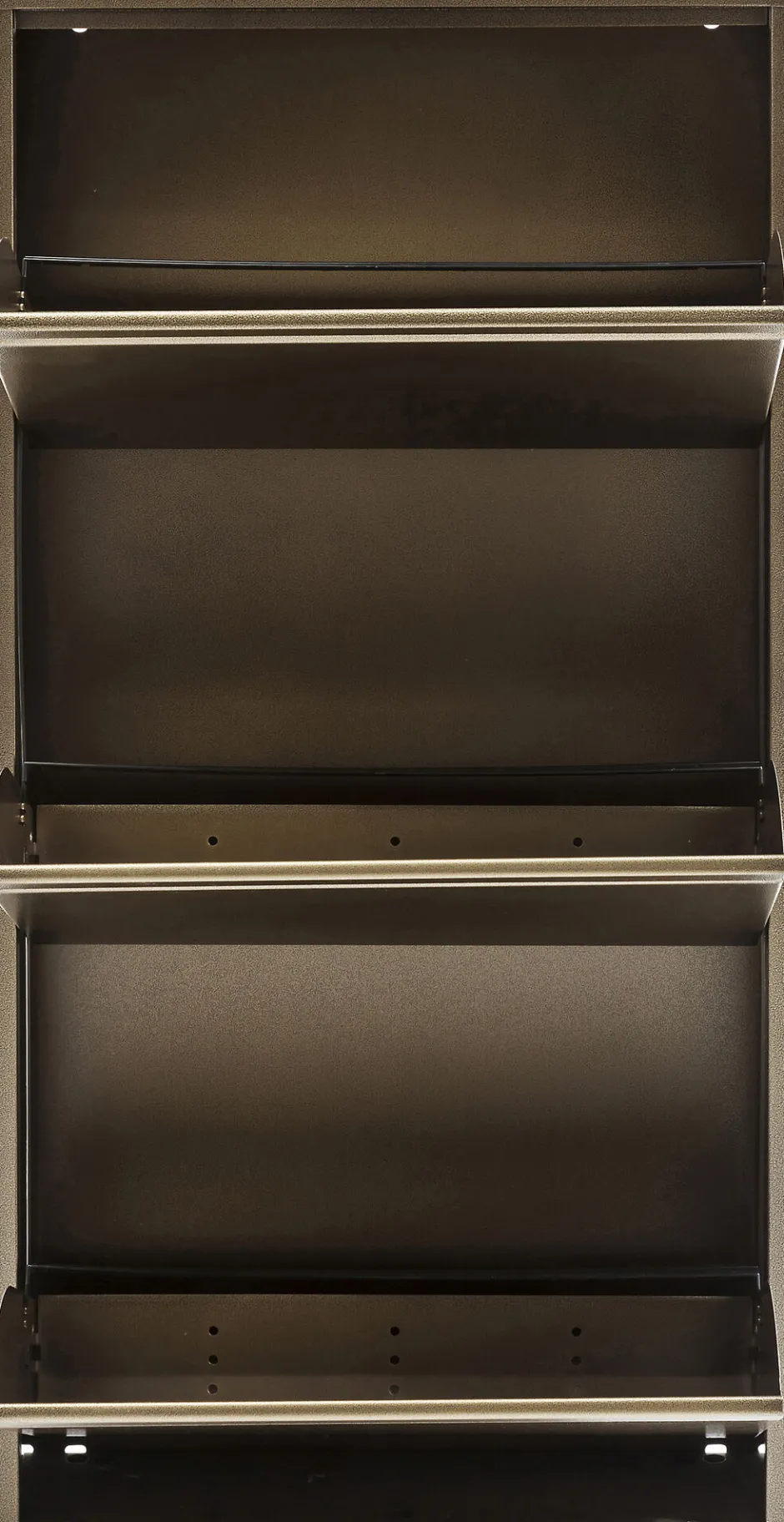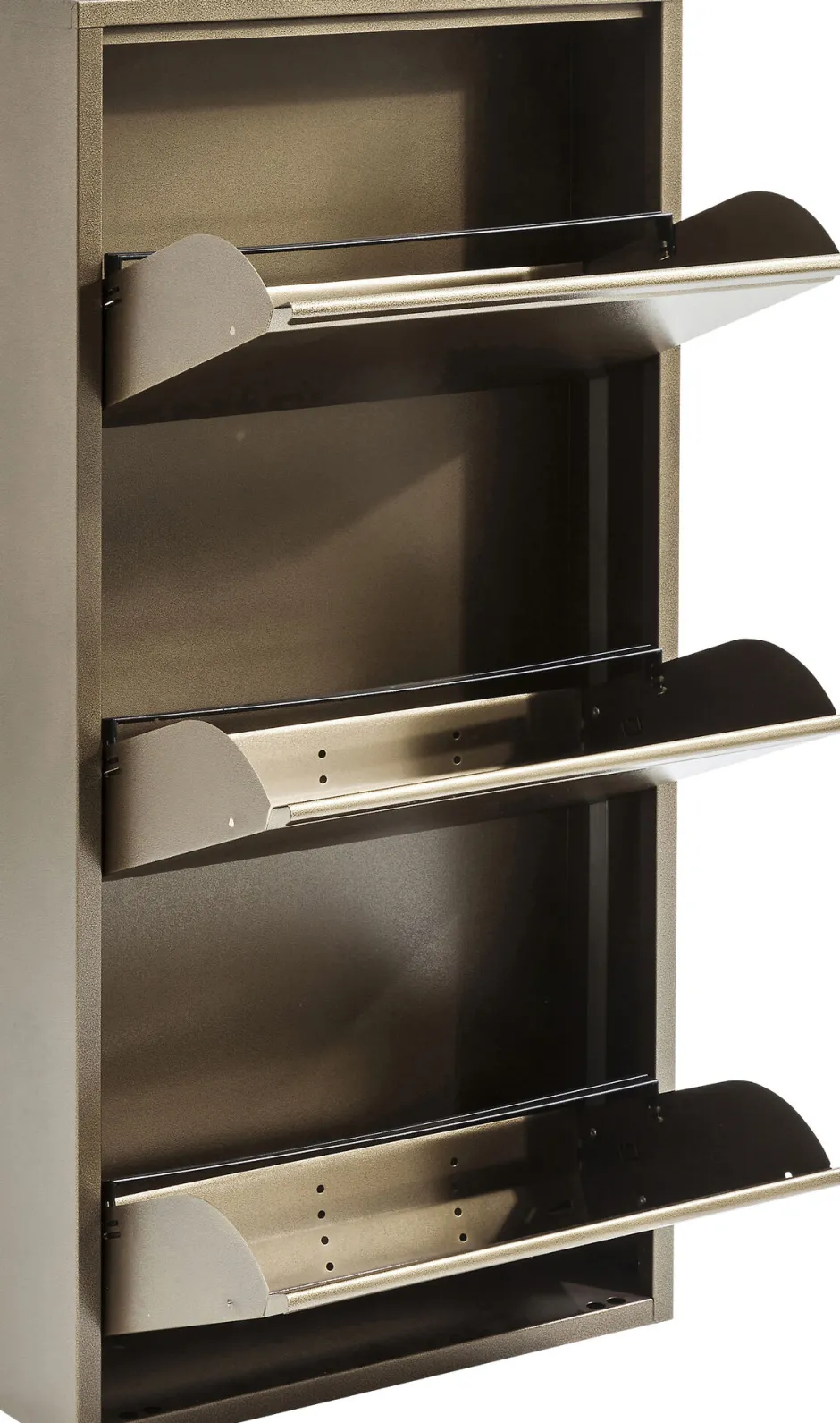 - Mittelhoher Schuhschrank in modernem Stahldesign mit drei Kippfächern für mindestens 6 Paar Schuhe, je nach Modell und Größe