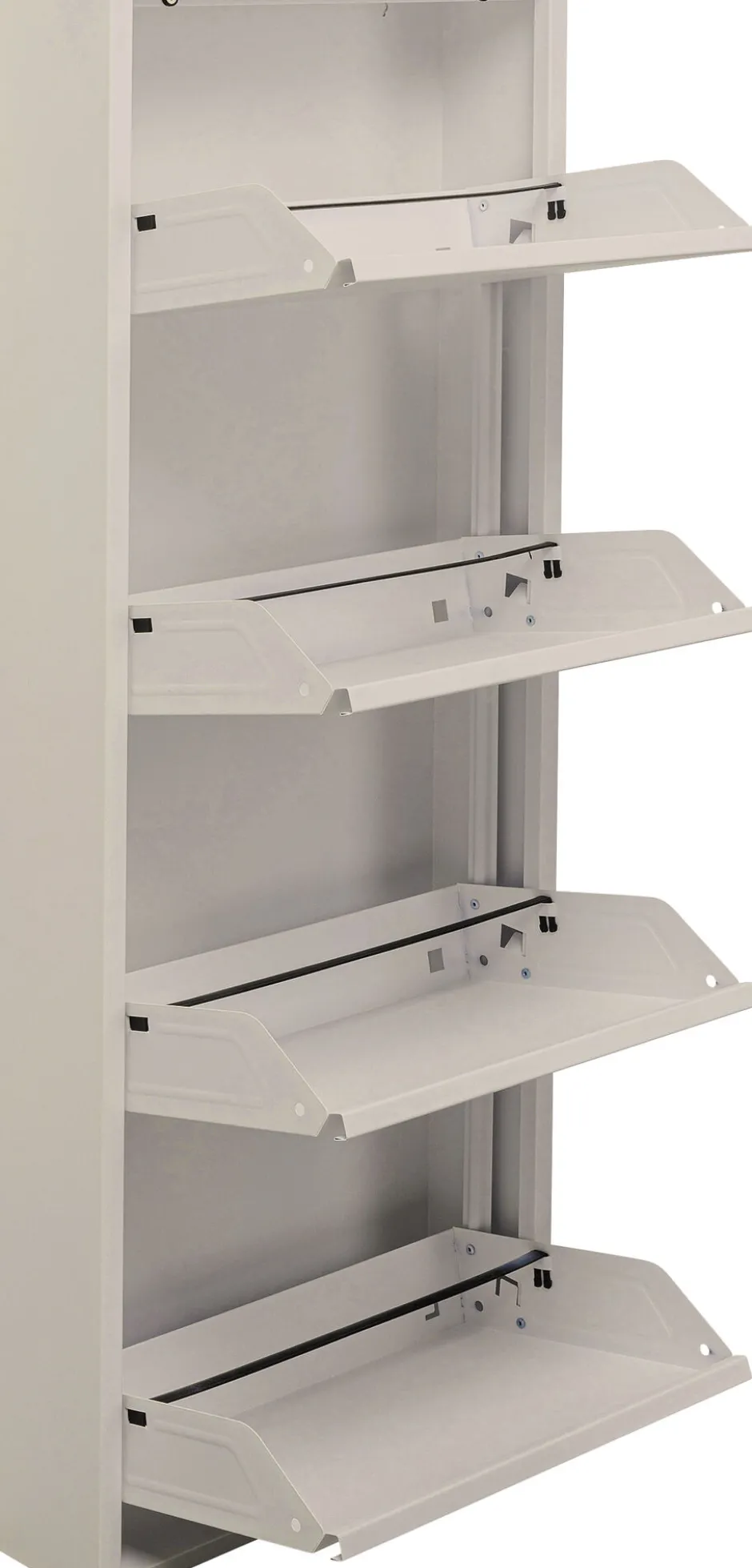 - Dank glatter Fronten und geringer Tiefe (15 cm) macht sich der Schuhkipper nahezu unsichtbar