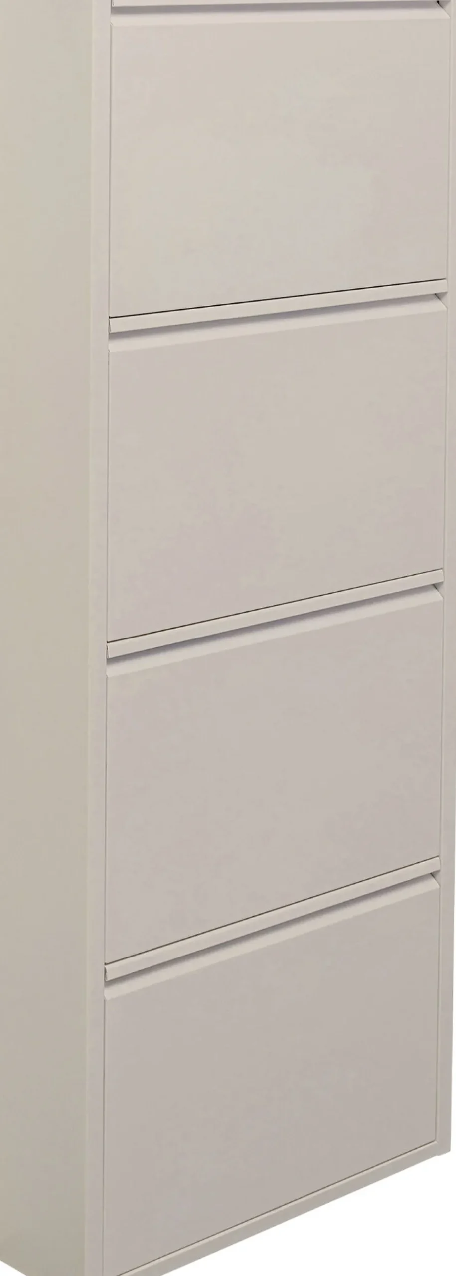 - Praktischer, beigefarbener Schuhschrank mit vier Kippfächern, 136 x 50 x 15 Zentimeter (H/B/T)