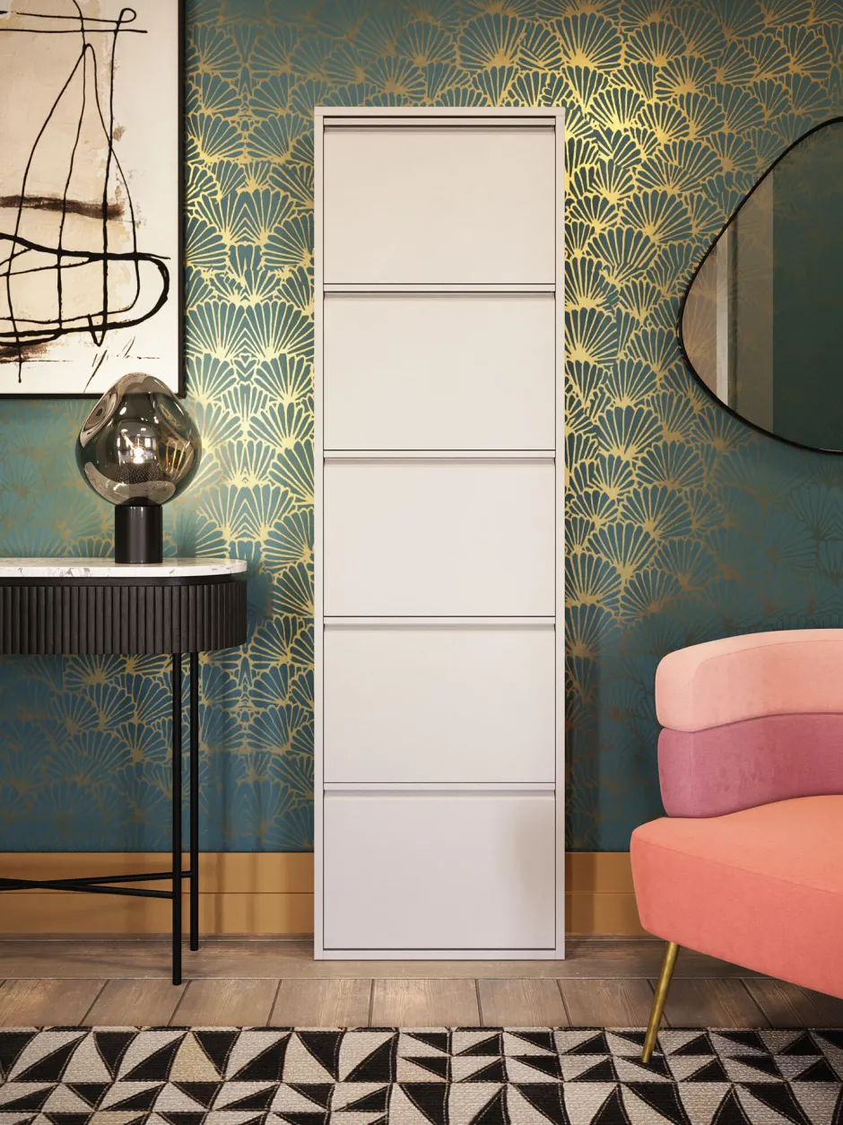 - Praktischer, creme Schuhschrank mit fünf Kippfächern
