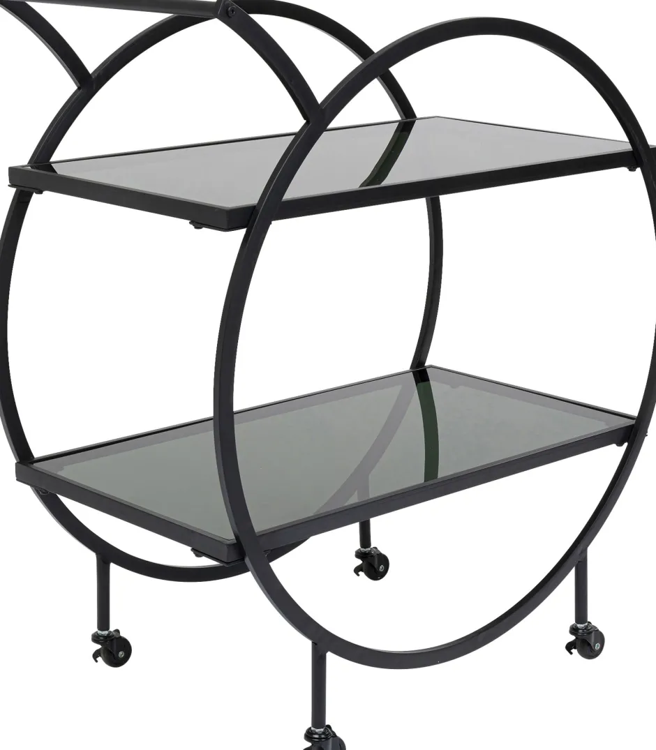 - Eleganter Servierwagen in Schwarz mit dunklen Glasplatten und einem Hauch Retro-Design