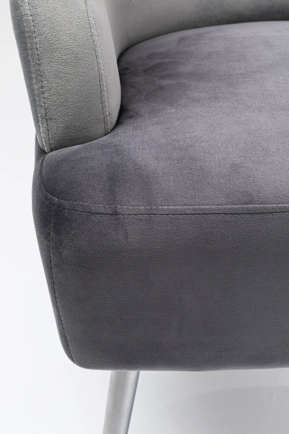 - Voll gepolsterter, kleiner Cocktailsessel in grauer Samtoptik mit silberfarbenen, leicht ausgestellten Beinen