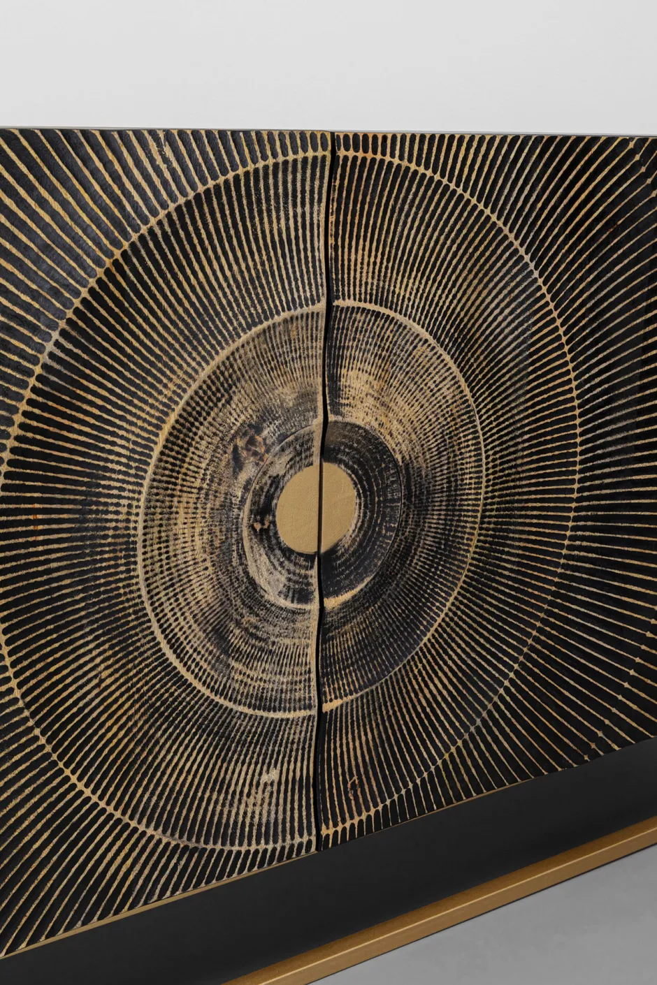 - Schwarzes Sideboard aus Massiv-Holz mit goldenem Gestell