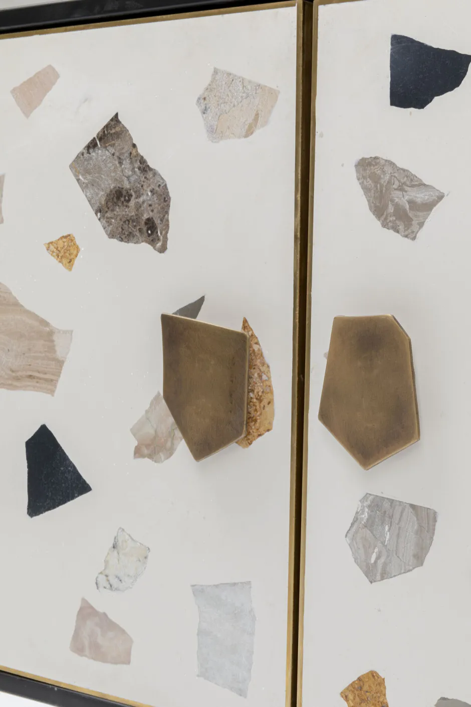 - Meisterstück mit Show-Talent: Großes Sideboard mit Stahlkorpus, Messing Veredelung und in echter Terrazzo-Technik gefertigten Fronten