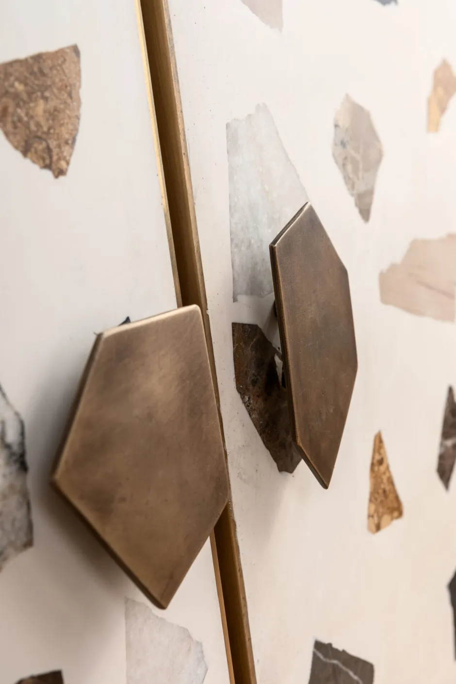 - Fronten in Terrazzo-Technik: In eine lackierte Basis aus Zement sind manuell hauchdünne Schnitte von Natursteinen eingelegt und seidenglatt poliert