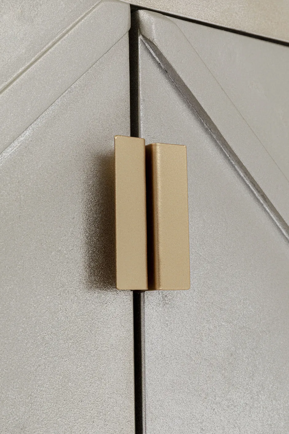 - Elegantes Sideboard in Silber und Gold mit grafischem Frontdesign, 64 x 180 x 45 Zentimeter (H/B/T)
