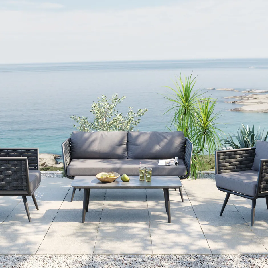- Das moderne Geflecht an den Lehnen in zeitlosem Anthrazit verleihen der Designer-Lounge ein luxuriöses Flair und schaffen maximalen Sitzkomfort