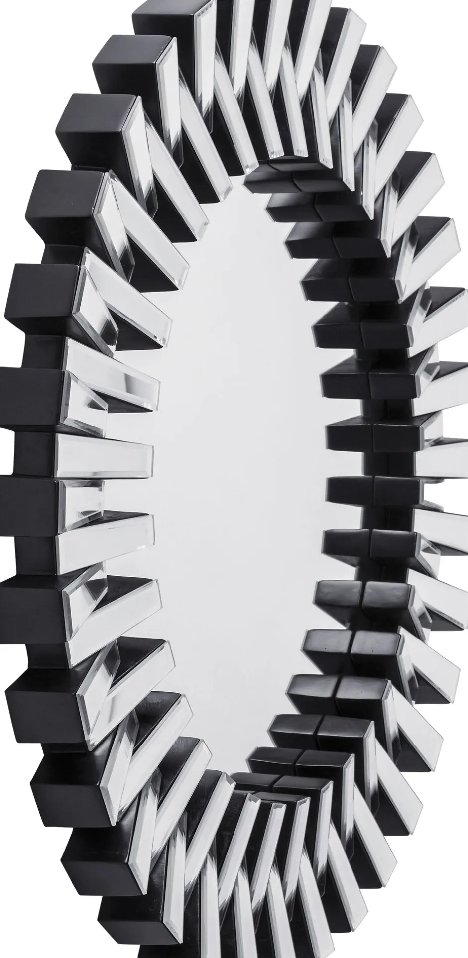 - Runder Wandspiegel im XL-Format mit verspiegeltem Rahmen – inspiriert vom Formenschatz der Sonnenspiegel. Aber hier in einer ultracoolen Variante