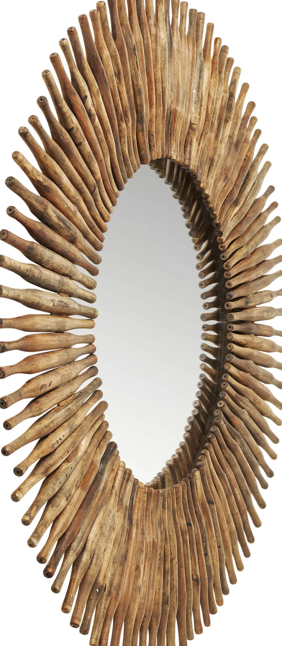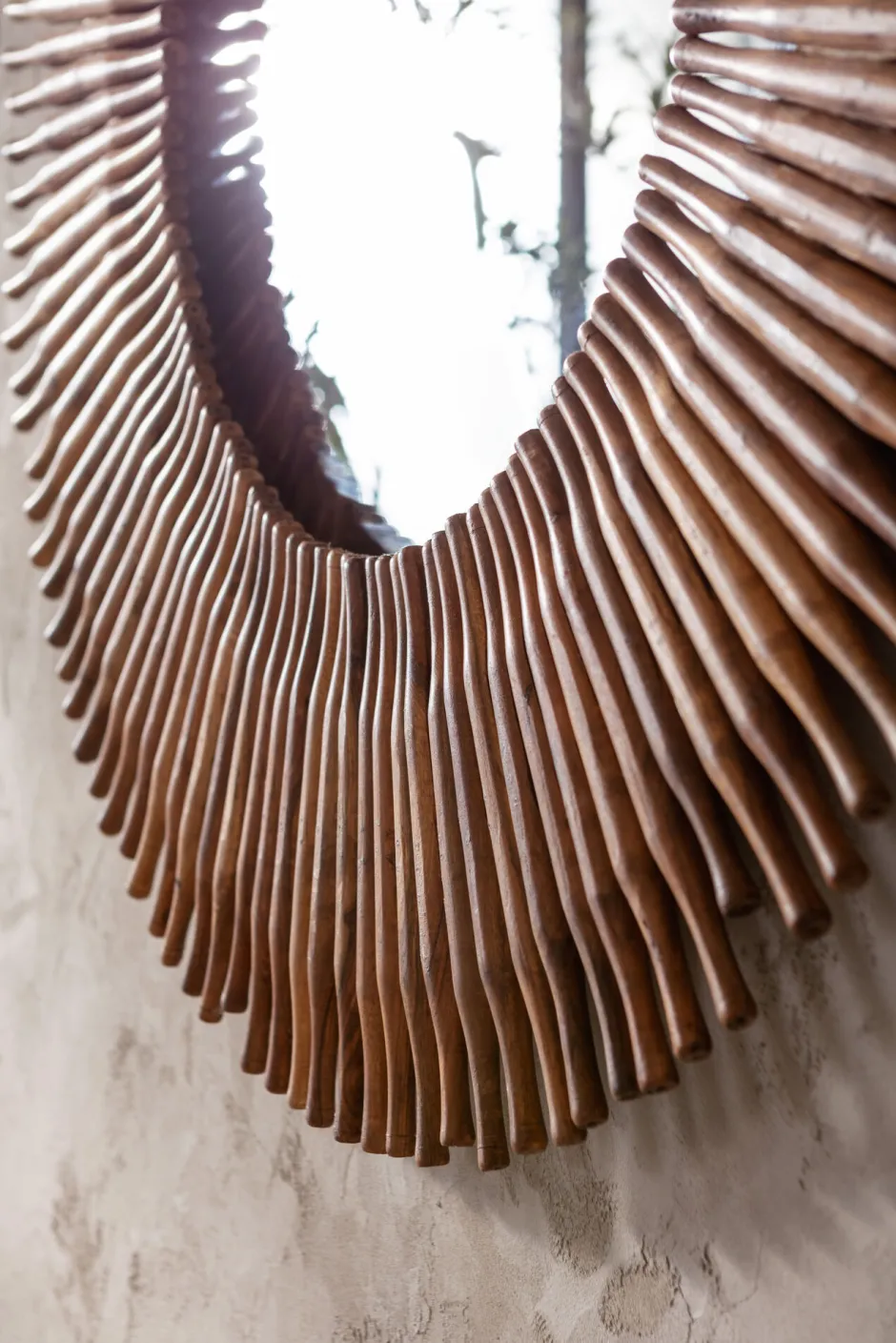 - Großer, runder Deko-Wandspiegel mit Rahmen aus recycelten Holzstäben