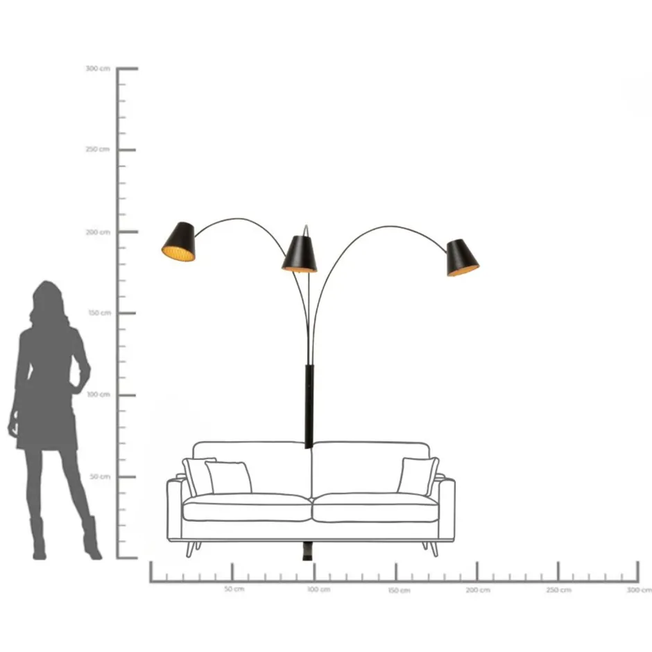 - Moderne Stehleuchte mit 3 Leuchtenschirmen in Matt-Schwarz, 210 x 158.5 x 140 Zentimeter (H/B/T)