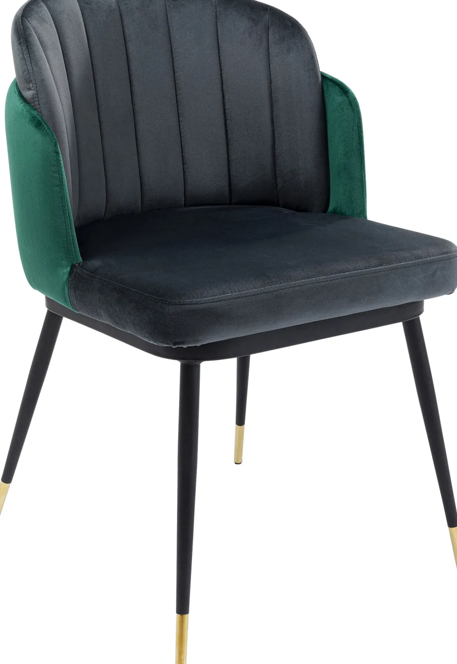 - Komfortabler Polsterstuhl in Grau und Grün mit einem samtigen Bezug aus Polyester