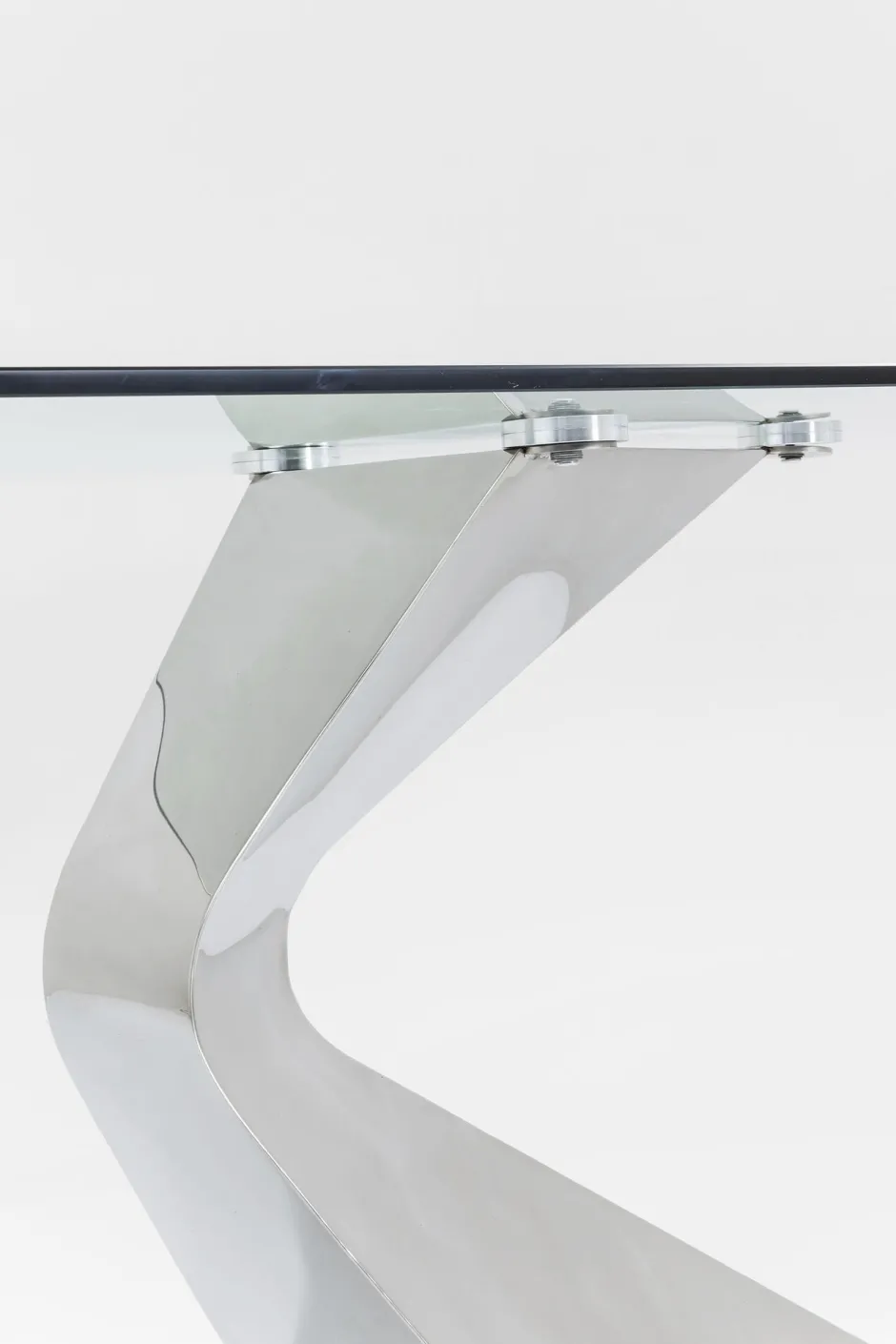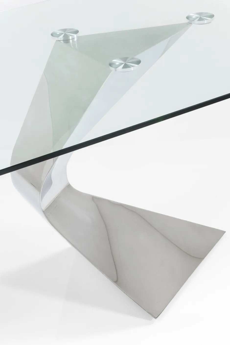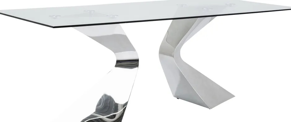 - Rechteckiger, großer Glastisch mit dekorativ geschwungenen Beinen aus veredeltem Edelstahl für 6-8 Personen