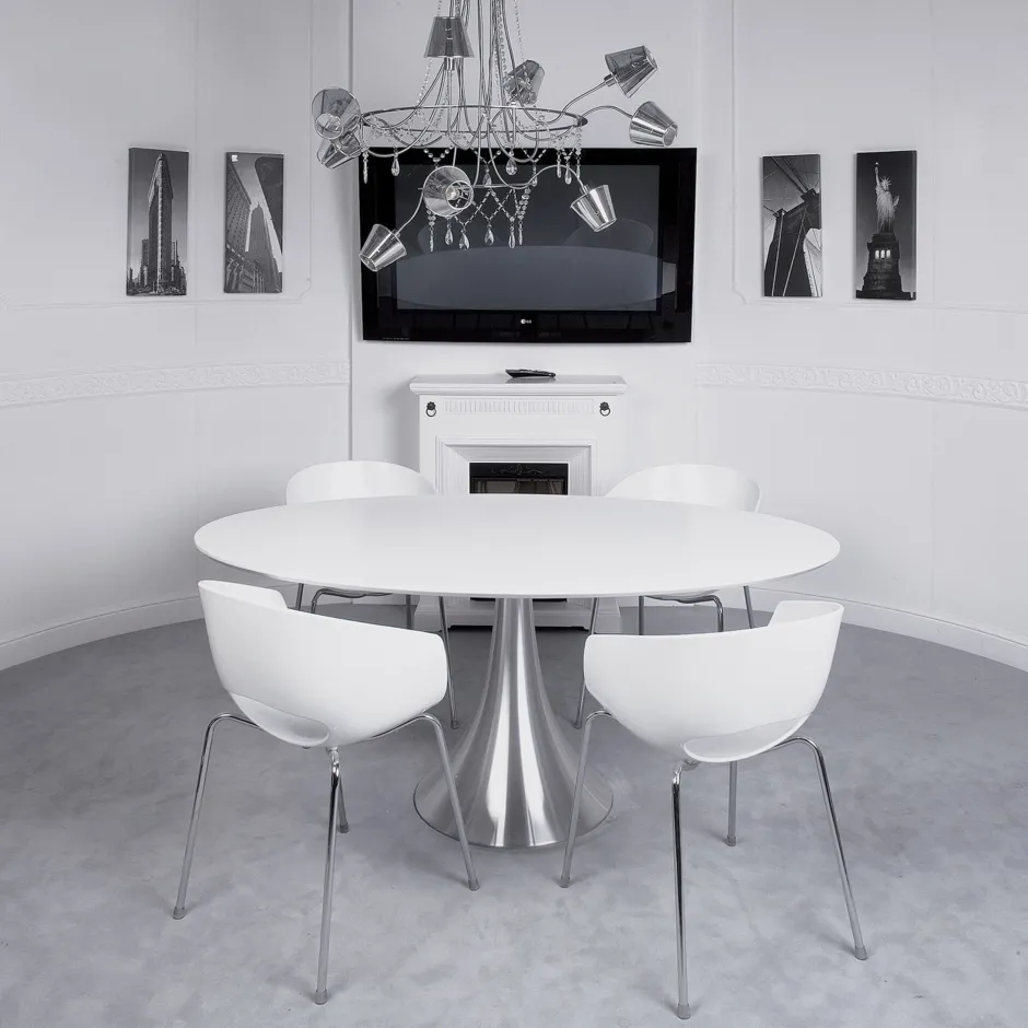 - Ovaler Esstisch in Weiß und Silber, 75 x 100 x 180 Zentimeter (H/B/T)