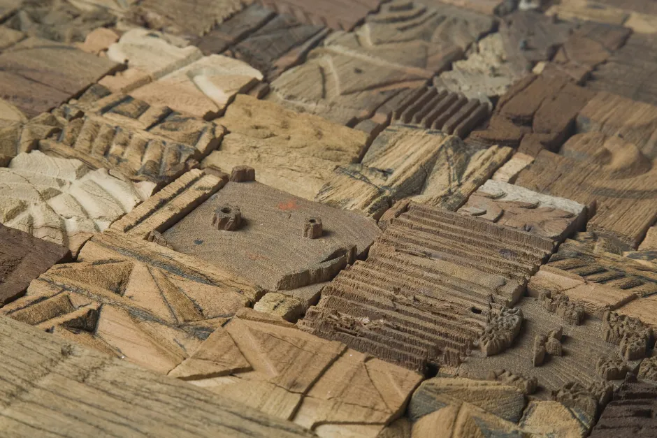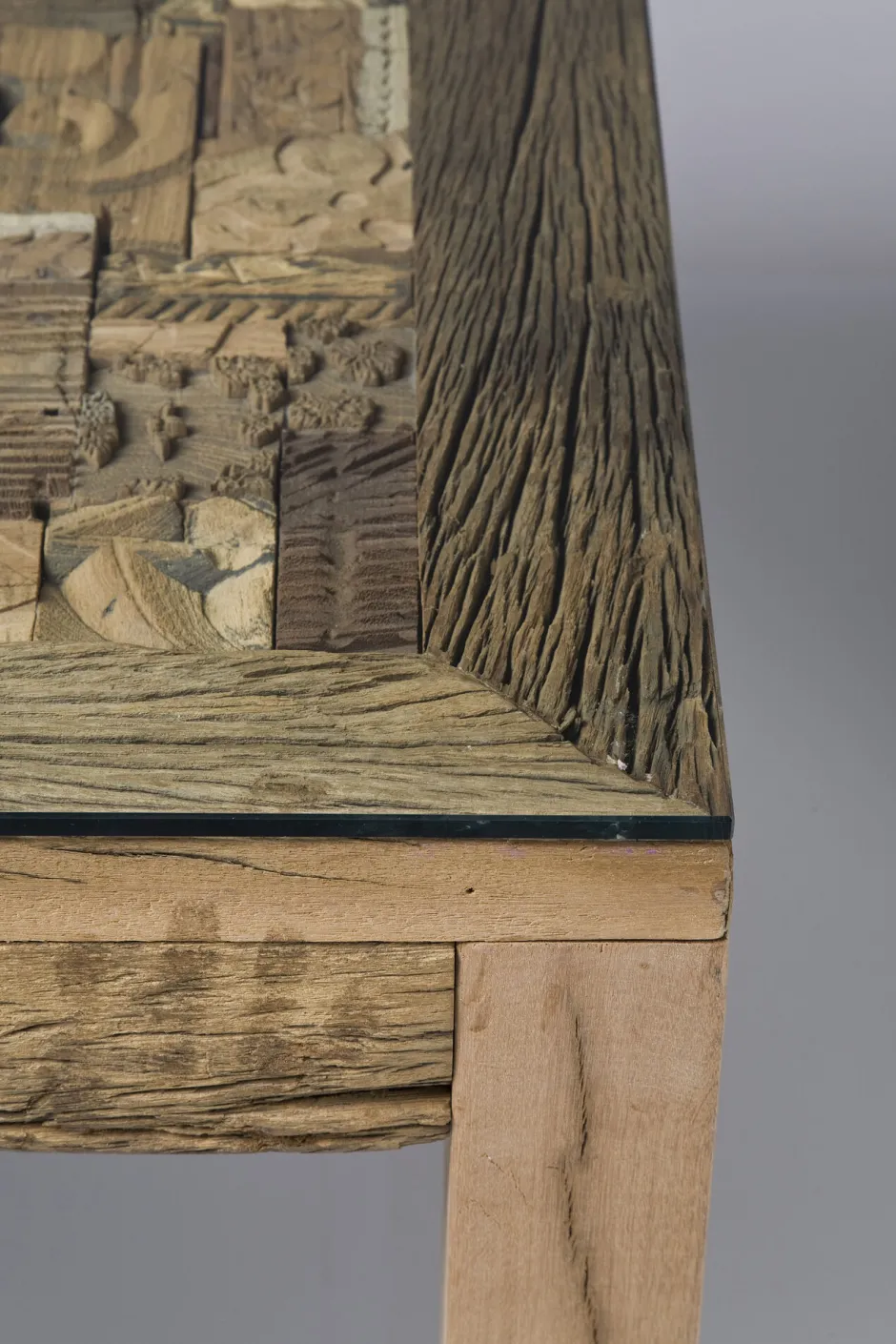 - Handgefertigtes Masterpiece: Einzigartige Tischplatte aus Holz mit Schnitzereien, die durch indisches Kunsthandwerk inspiriert sind. Jedes Stück ein Unikat