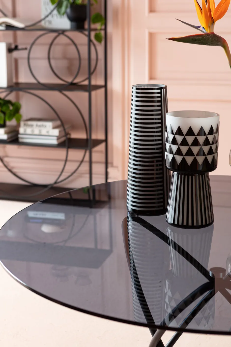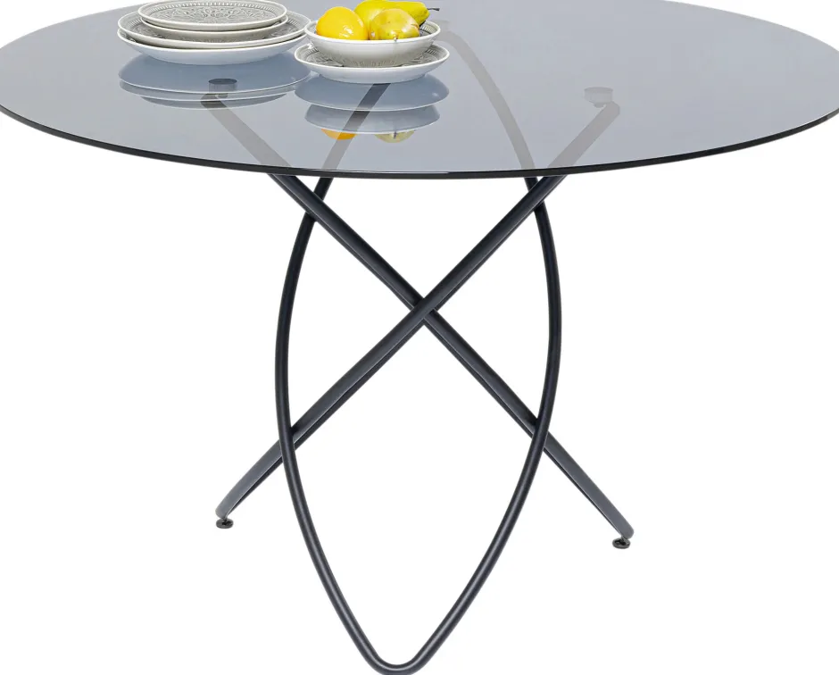 - Glastisch als optisches Highlight für den Essbereich mit dunkel getönter ESG-Glasplatte und schwarzem Fuß