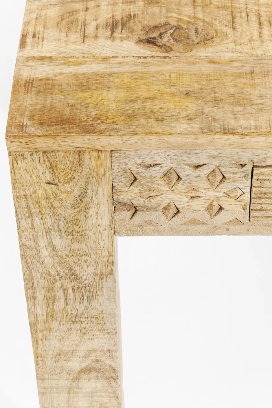 - Rechteckiger, handgefertigter Esstisch aus Mango-Massivholz mit dekorativen Schnitzereien für 4 Personen